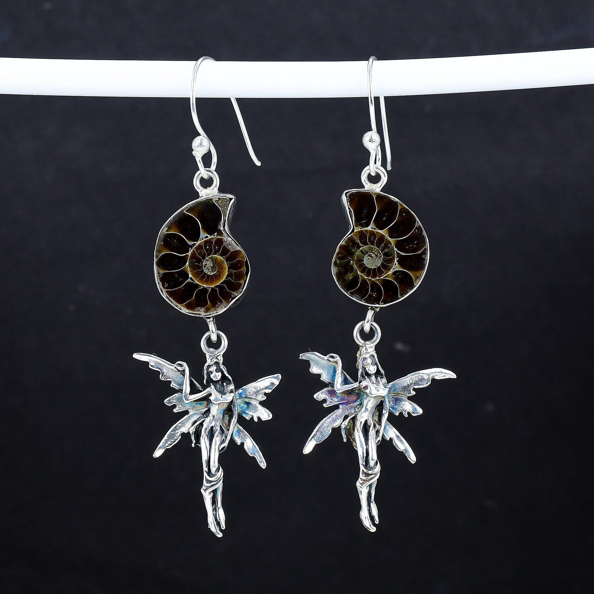 Step into a world of magic with these exquisite Spiral Fairy Earrings. Featuring genuine ammonite fossils, each piece is a unique testament to the beauty of nature's timeless spirals. Adorned with delicate fairy charms, these earrings evoke a sense of wonder and fantasy.