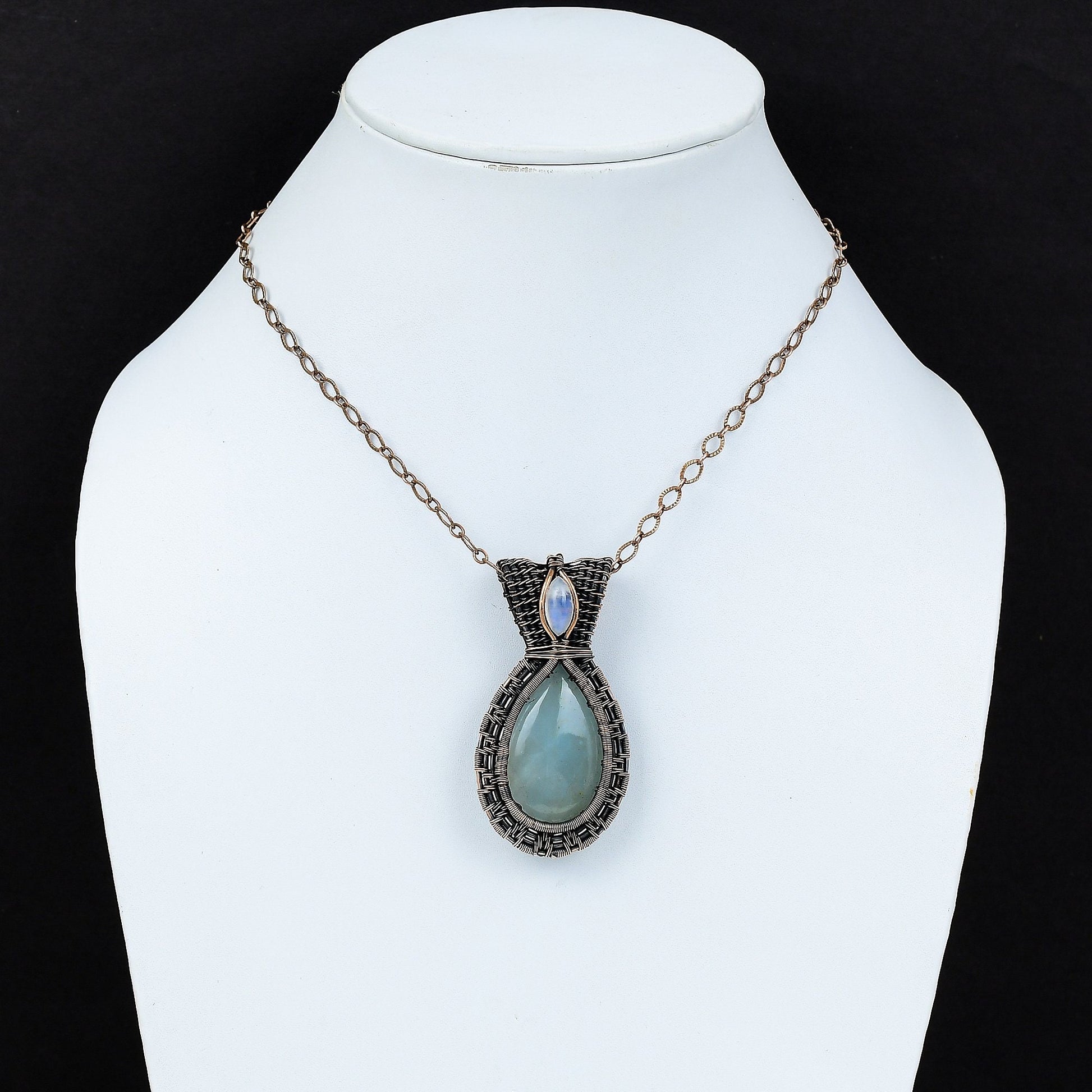 Discover the exquisite elegance of our handcrafted pendant, featuring a stunning central gemstone wrapped in intricately woven wire.