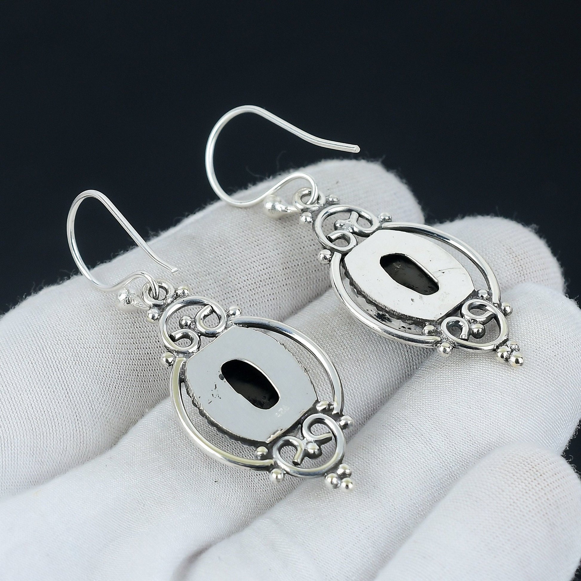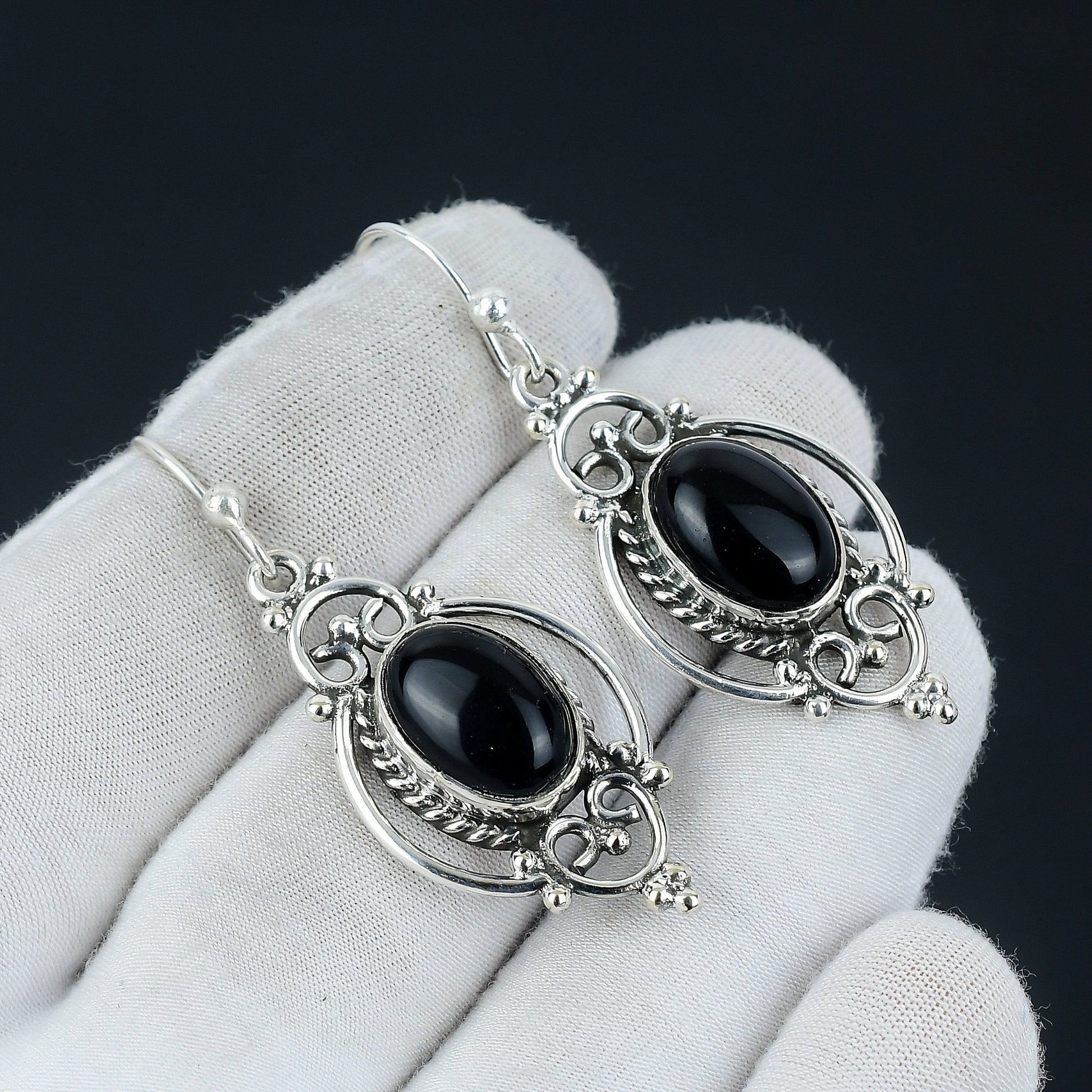Elevate your style with these exquisite silver earrings featuring stunning black stones.