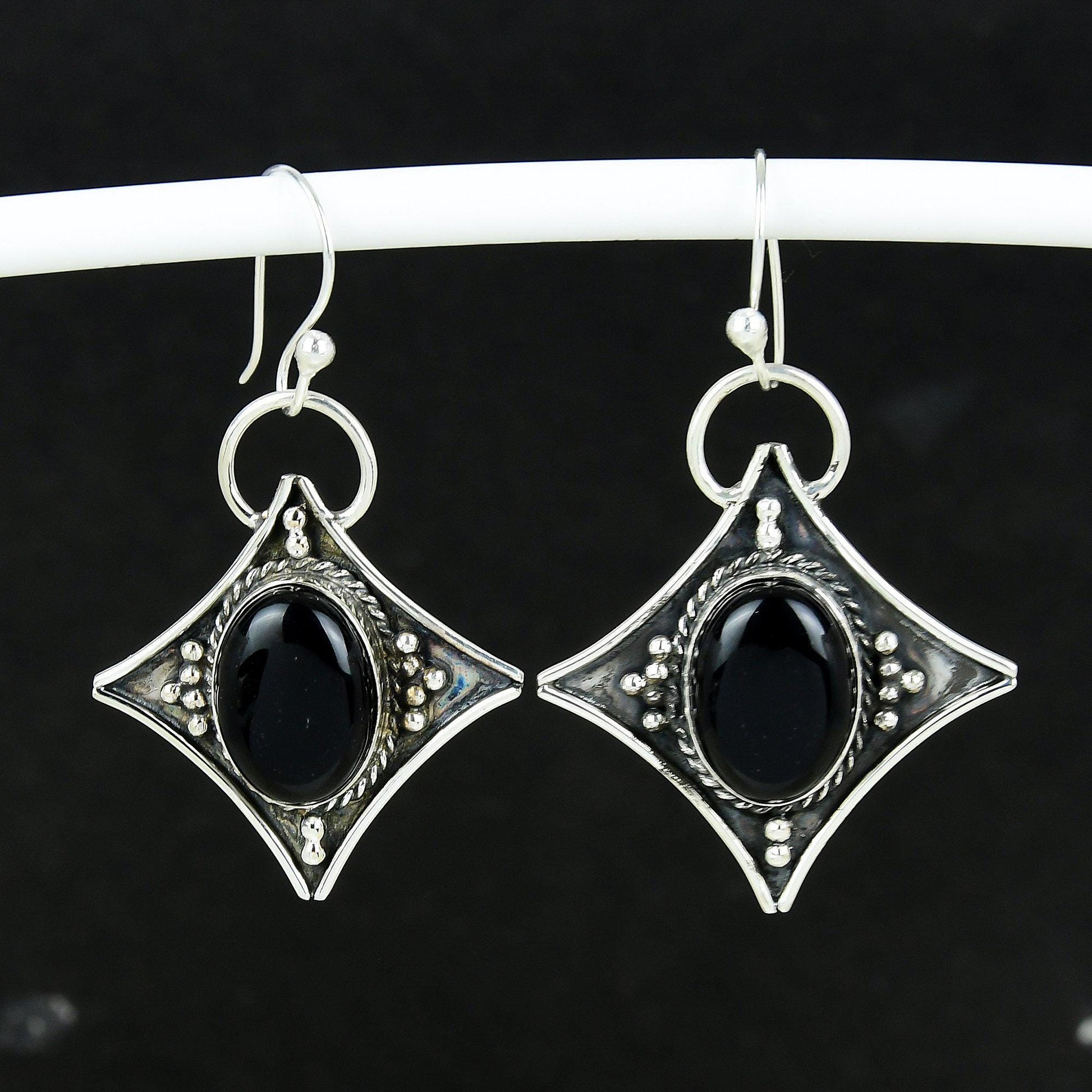 Experience timeless elegance with our exquisitely crafted black stone earrings, designed to captivate and complement any ensemble.
