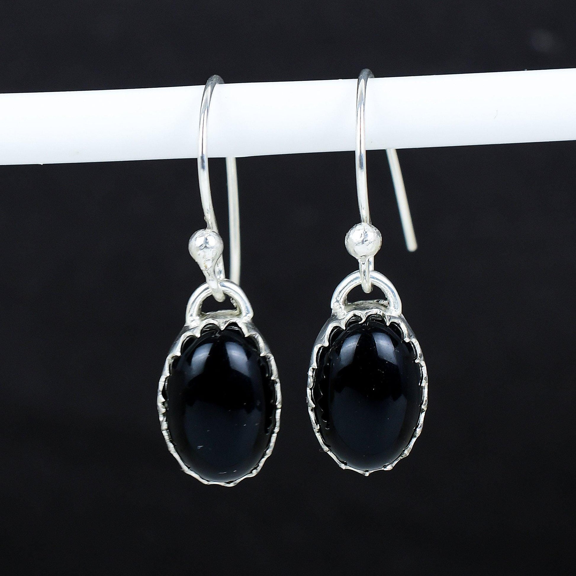 Enhance your elegance with these exquisite black stone earrings, set in a stunning silver frame.