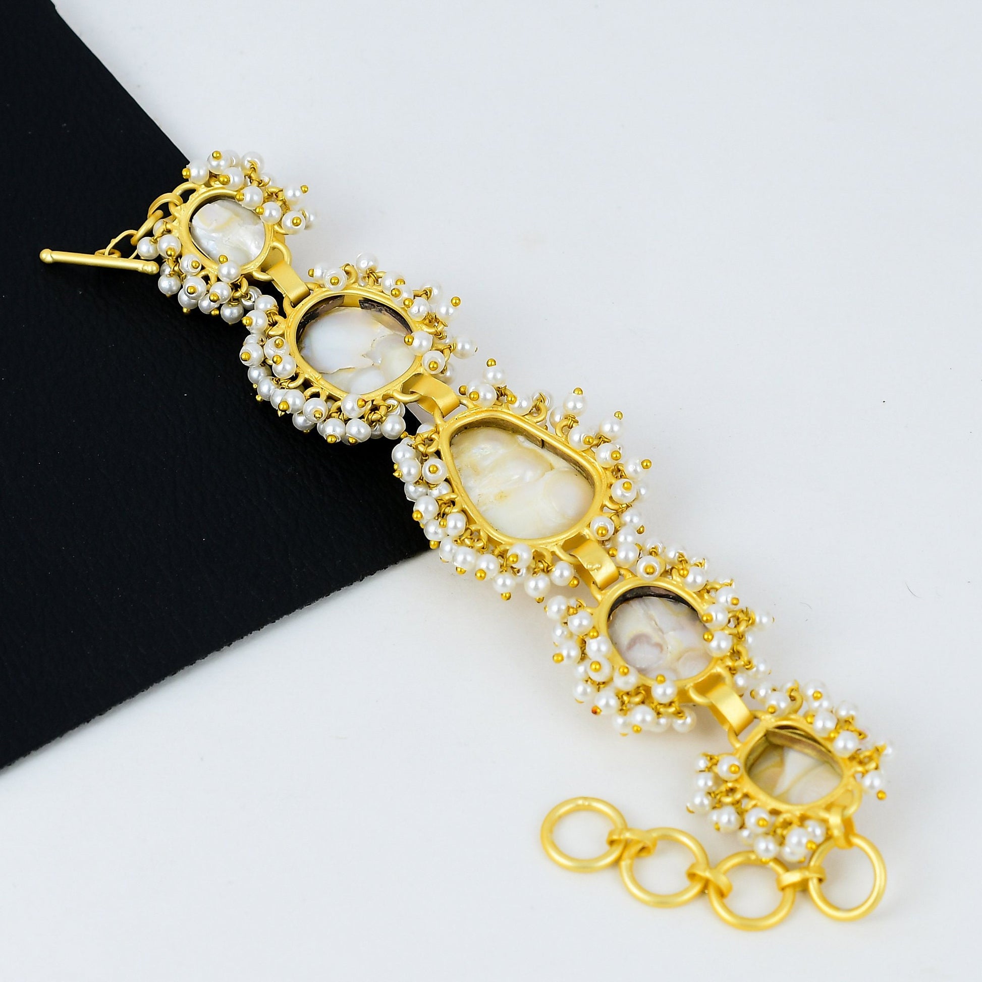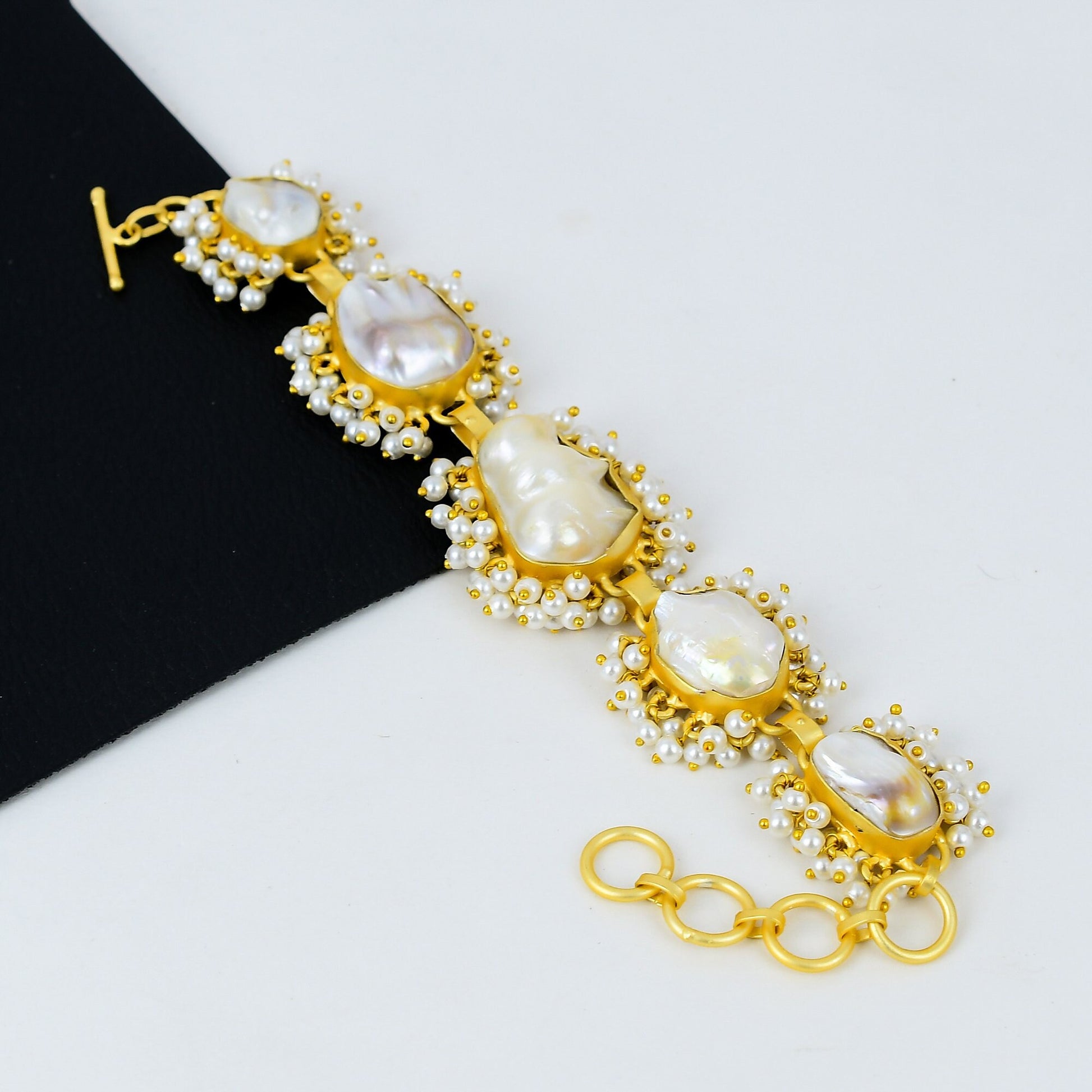 Adorn your wrist with the timeless elegance of our Elegant Baroque Pearl Bracelet. This exquisite piece features hand-selected baroque pearls intricately set in a lustrous gold base.