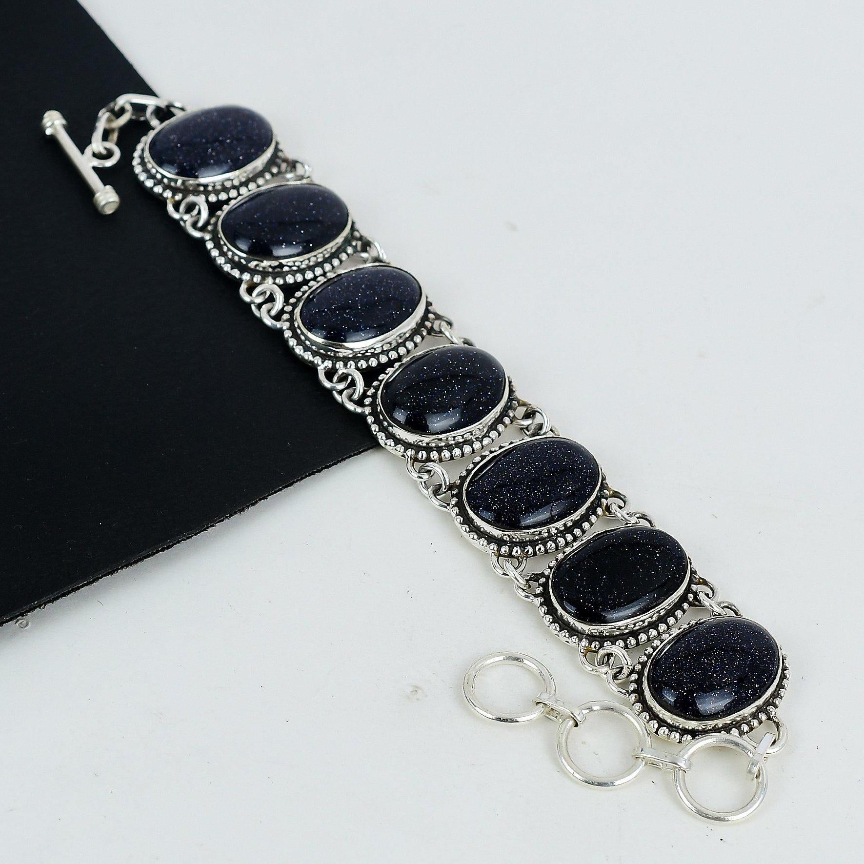 Our Blue Sandstone Bracelet is not just a piece of jewelry; it's an experience. Its deep blue hues, interspersed with natural sparkles, resemble a starry night sky, adding a touch of celestial elegance to your wrist.