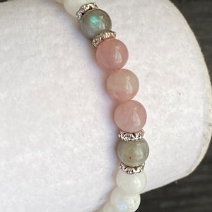 Discover effortless elegance with the Nerissa Moonstone Bracelet — a luxurious blend of natural beauty and minimalist design. Crafted with care, this bracelet features a harmonious mix of pink crystal, luminous Moonstone, and smooth white porcelain stone beads.