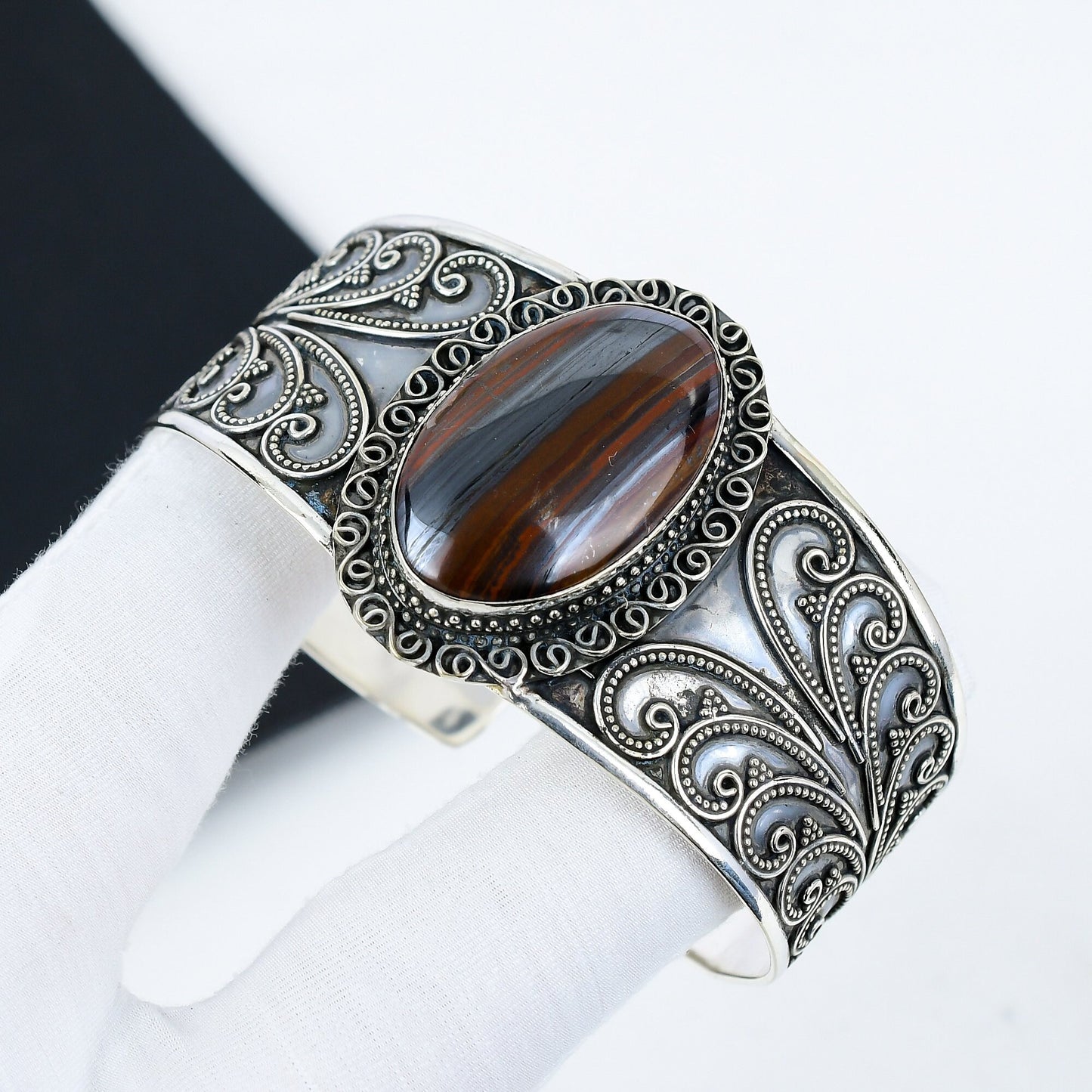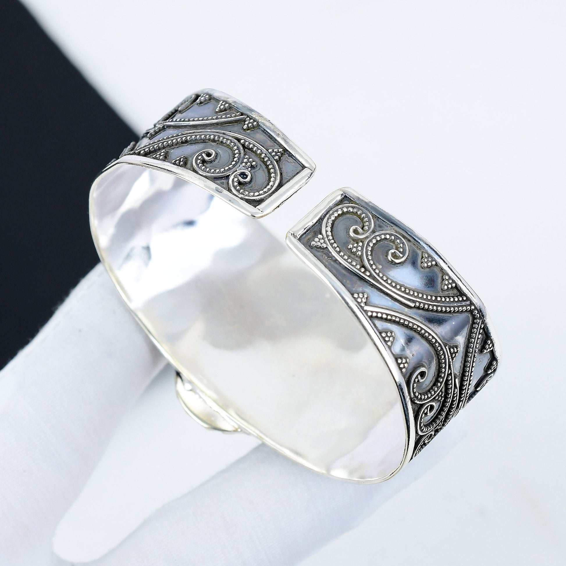 Design: Featuring intricate scrollwork with delicate milgrain detailing, this bracelet showcases a stunning oval stone centerpiece, adding a touch of sophistication to any outfit.