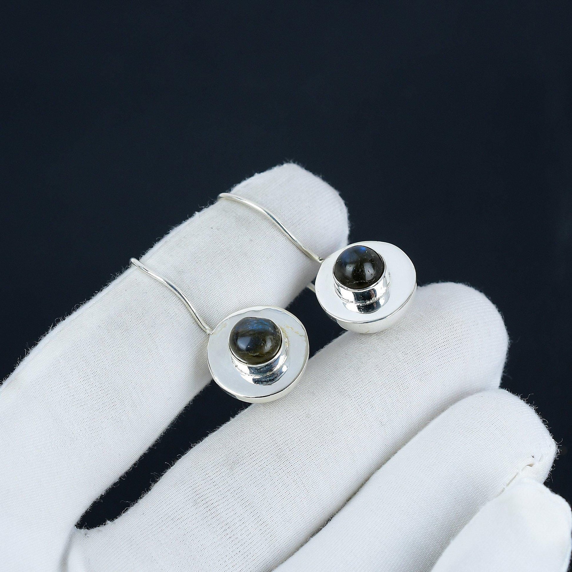 The mesmerizing glow of labradorite brings a touch of magic, while the smooth silver finish offers a refined appearance. Perfect for any occasion, these earrings are a beautiful addition to both casual and formal wear.