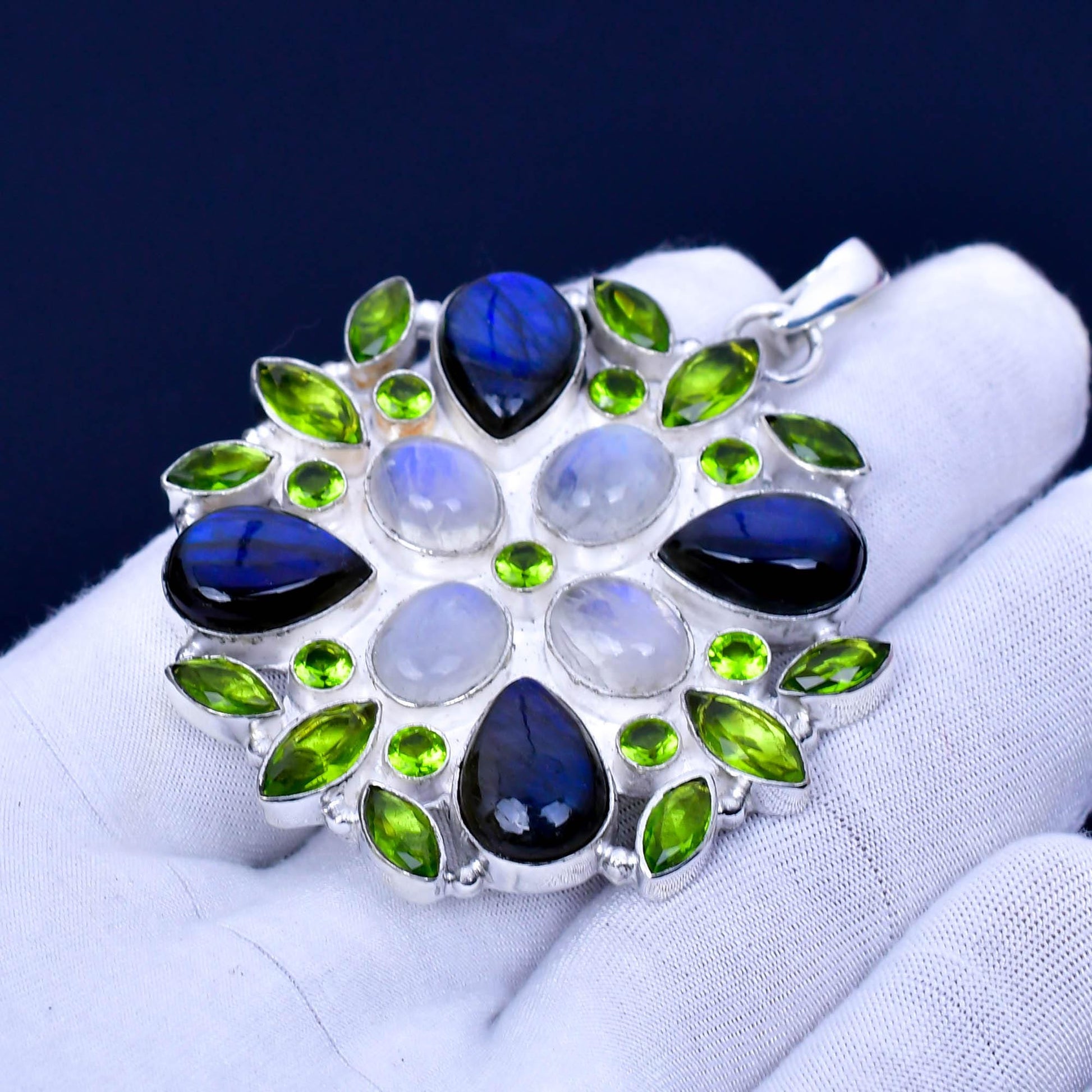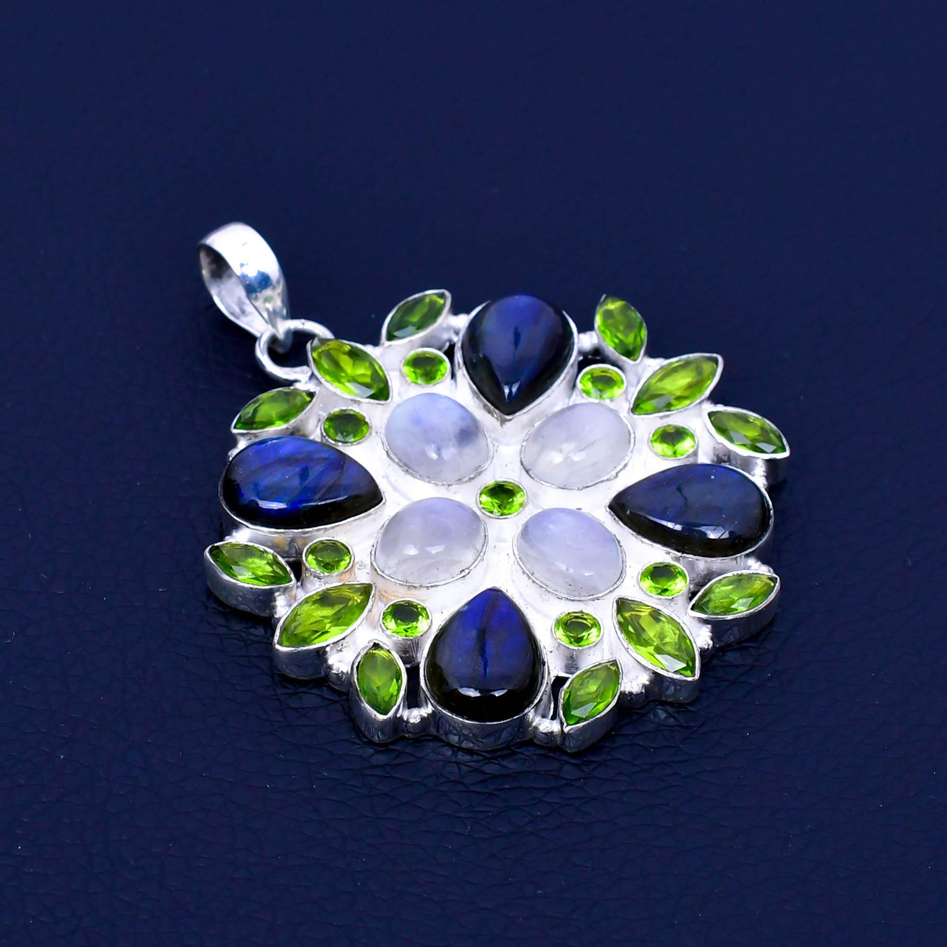 Set in high-quality sterling silver, the pendant showcases an artful arrangement of stones, creating a harmonious blend of colors and shapes.