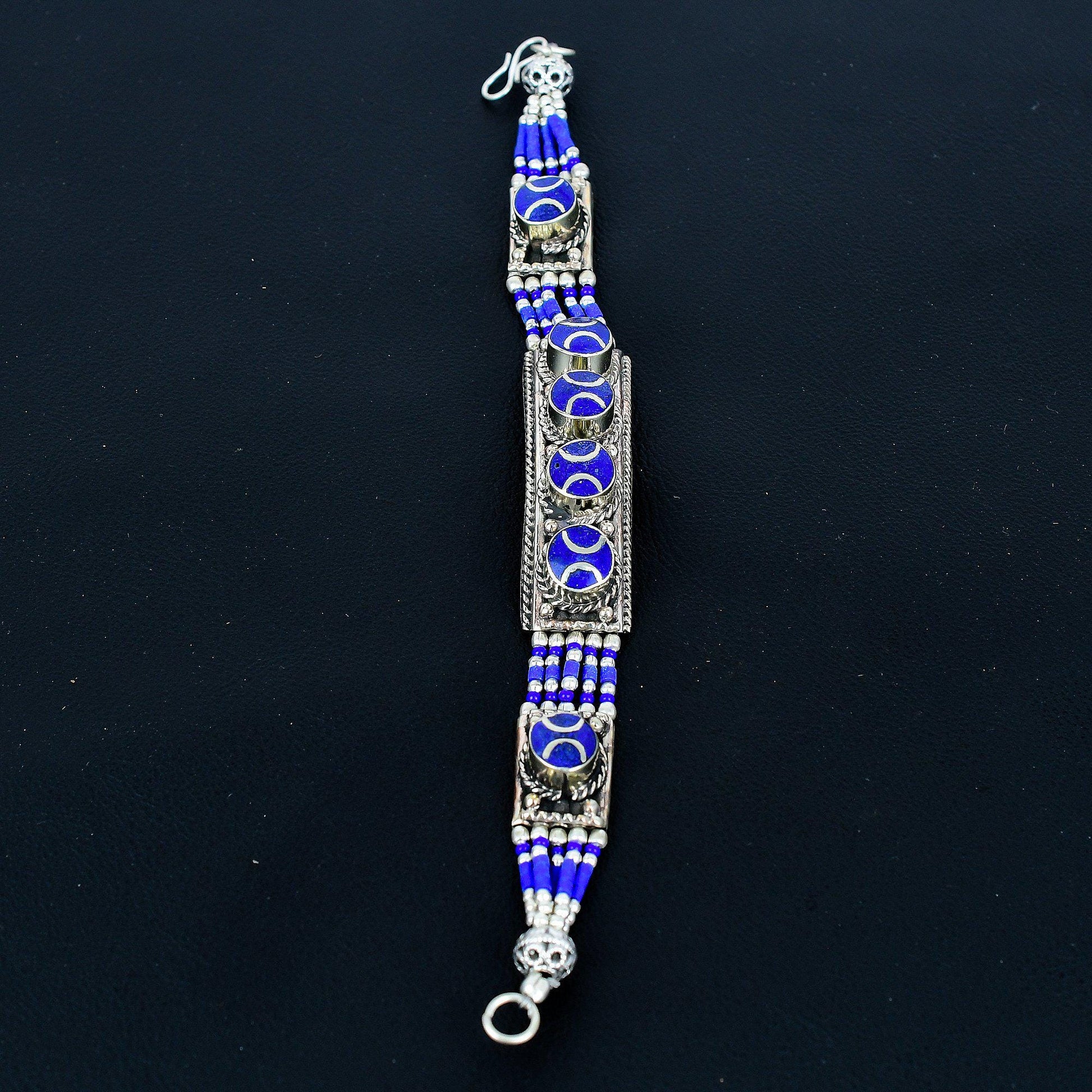 Experience elegance with our exquisite Blue Lapis and Silver Bracelet. This stunning piece combines the deep allure of natural blue lapis stones with the timeless shine of high-quality silver.