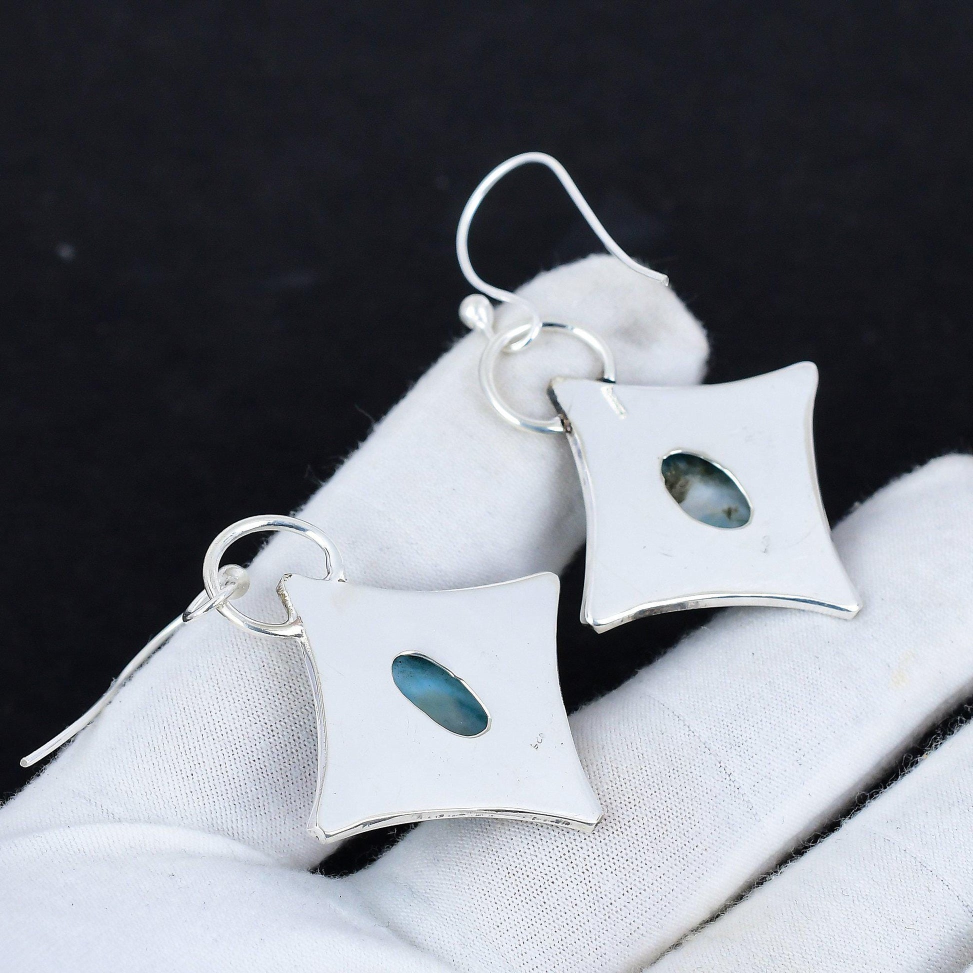 Discover elegance with these exquisite sterling silver earrings, designed to make a statement wherever you go. The centerpieces are stunning blue gemstones, crafted to reflect oceanic hues for a mesmerizing display.