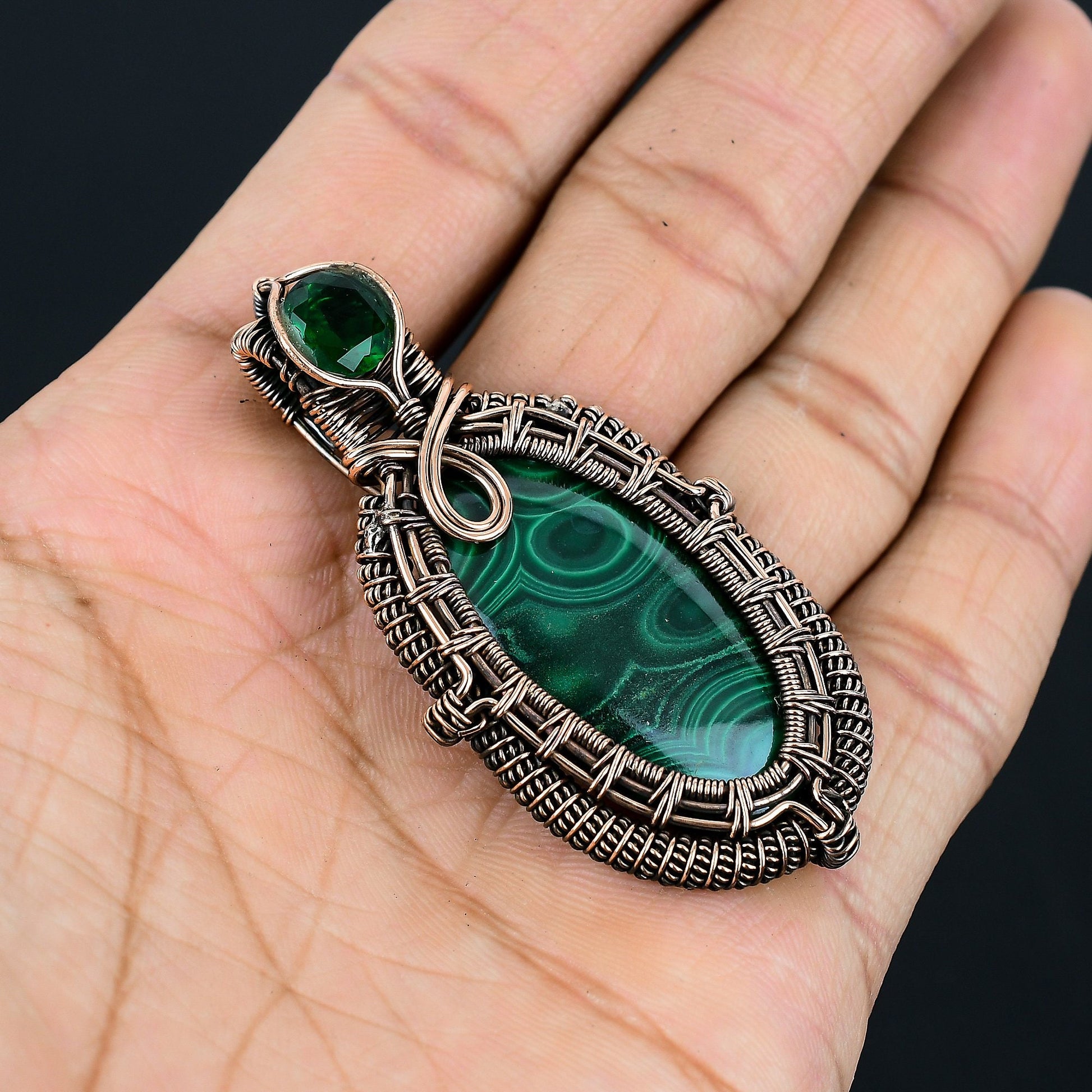 Encased in intricate wire wrapping, the copper provides a warm and earthy contrast that enhances the stone's natural allure.