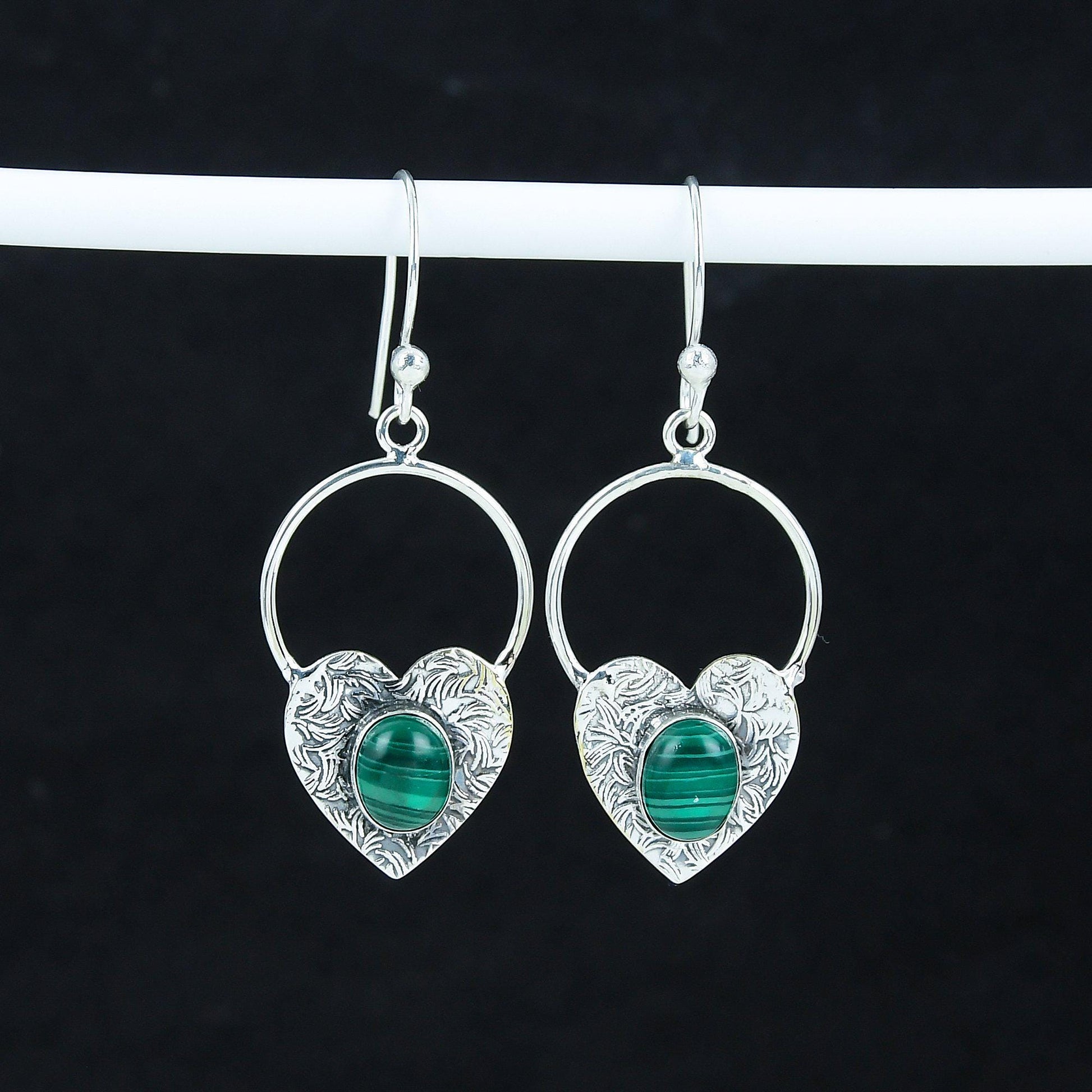 Stone: Centered within each heart is a captivating green malachite stone, offering a striking contrast and a touch of color.