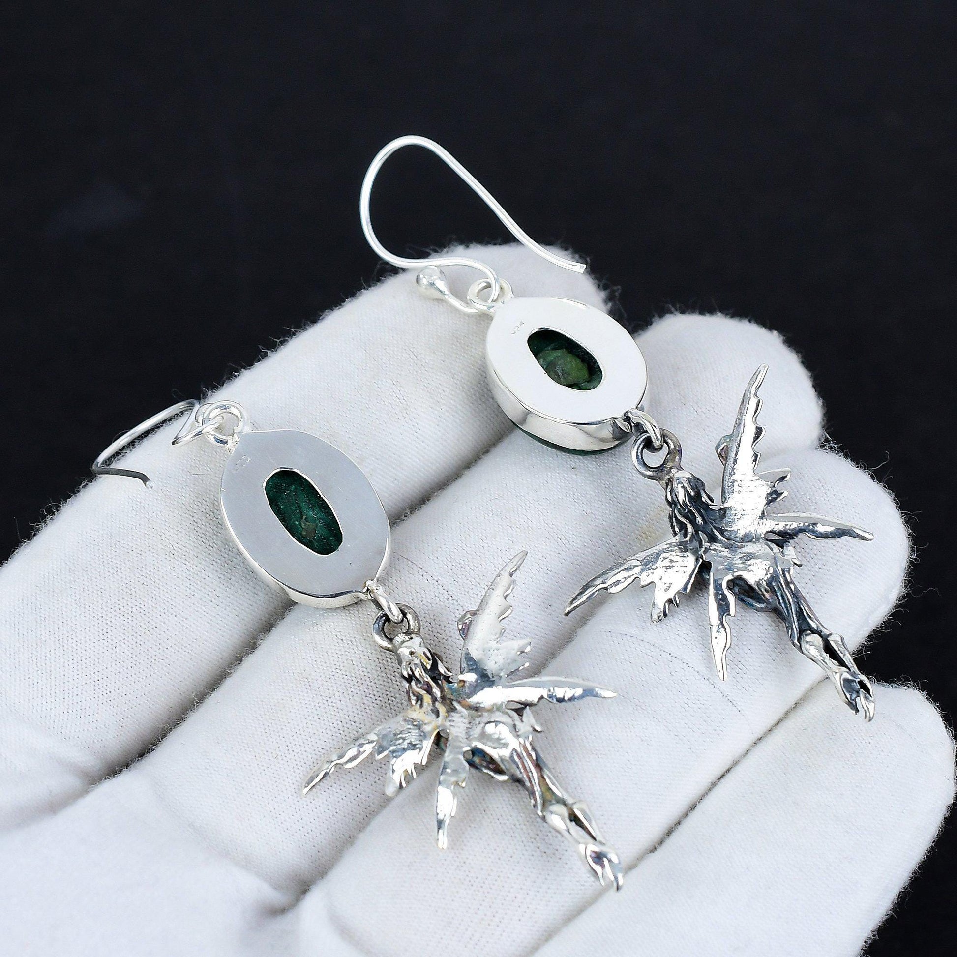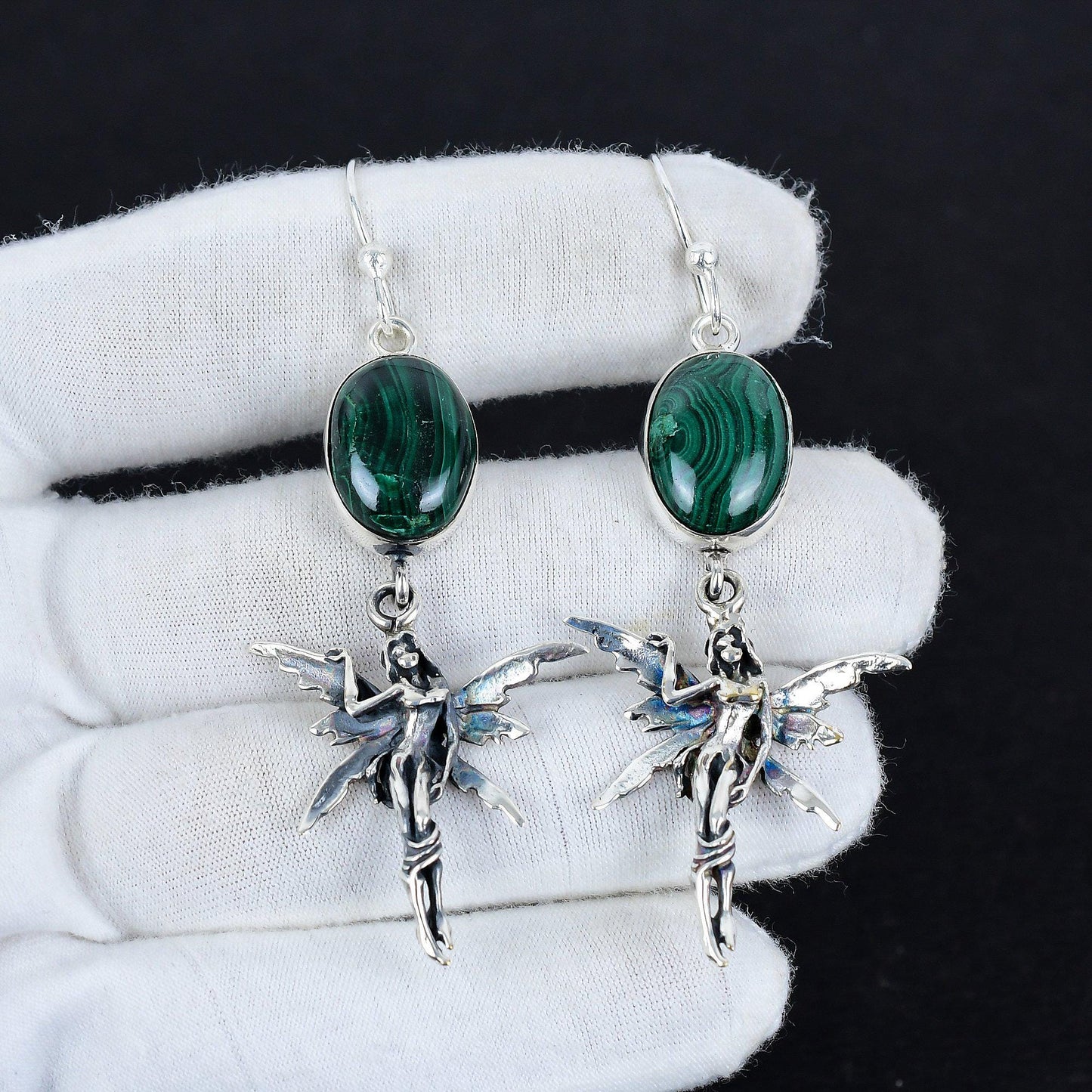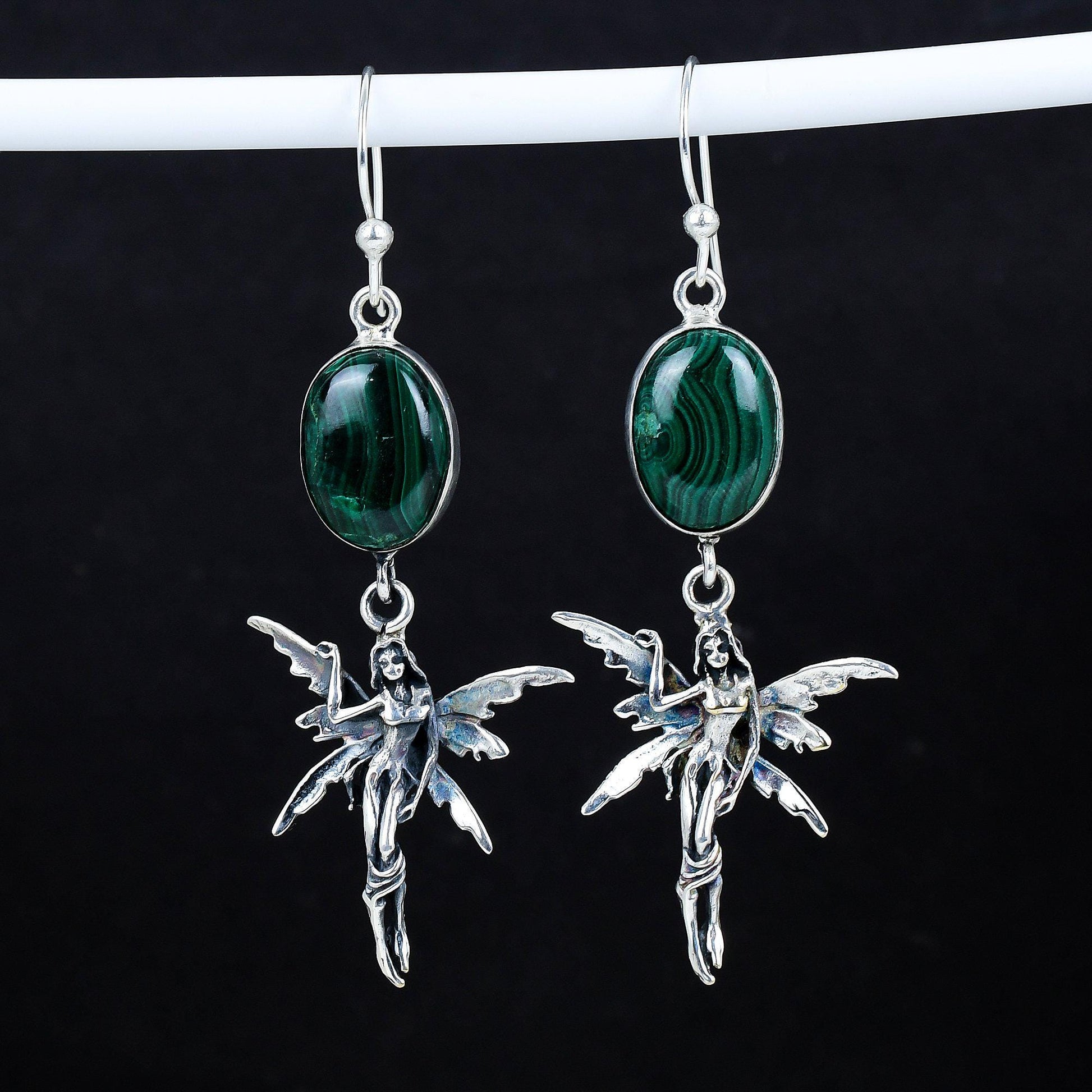 Discover elegance with our stunning handcrafted earrings, featuring enchanting fairy charms and exquisite green malachite stones.