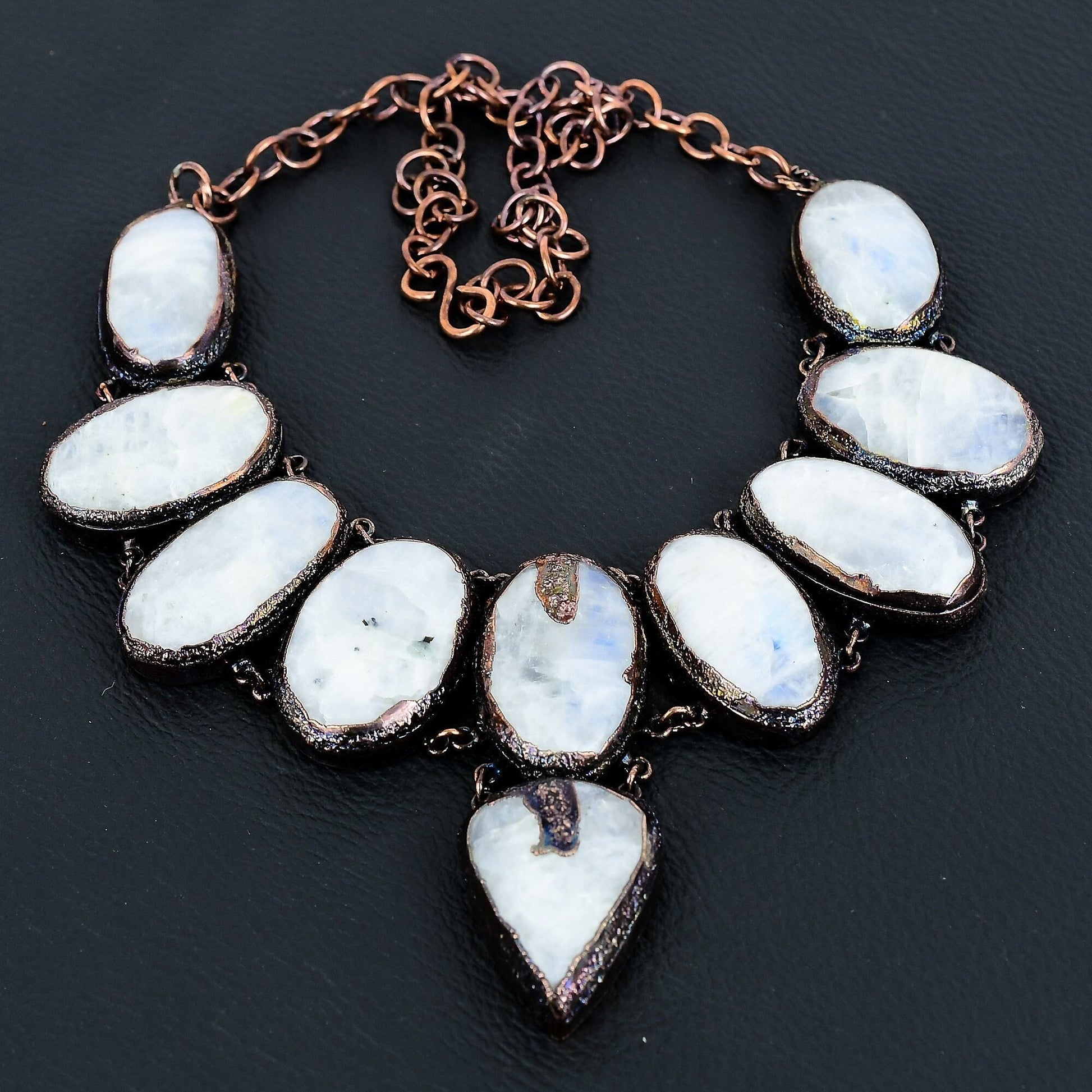 Elevate your style with this exquisite Moonstone Statement Necklace, crafted with meticulous attention to detail.