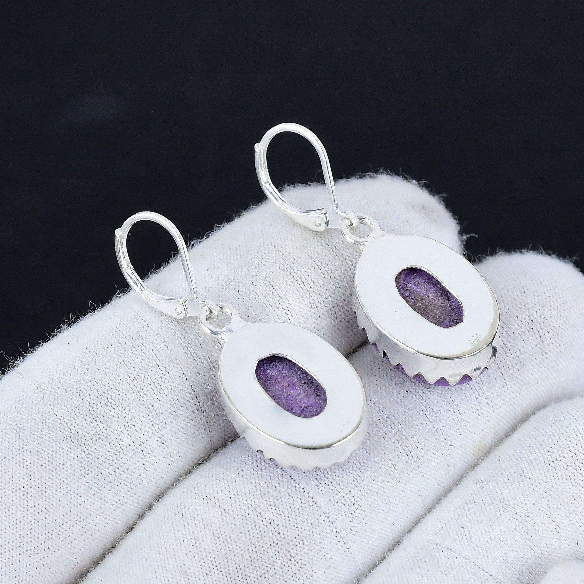 These stunning earrings feature beautifully polished, oval-shaped lavender stones, set elegantly in a high-quality silver frame. The vibrant hue of the stones is sure to catch the eye and add a pop of color to any outfit.