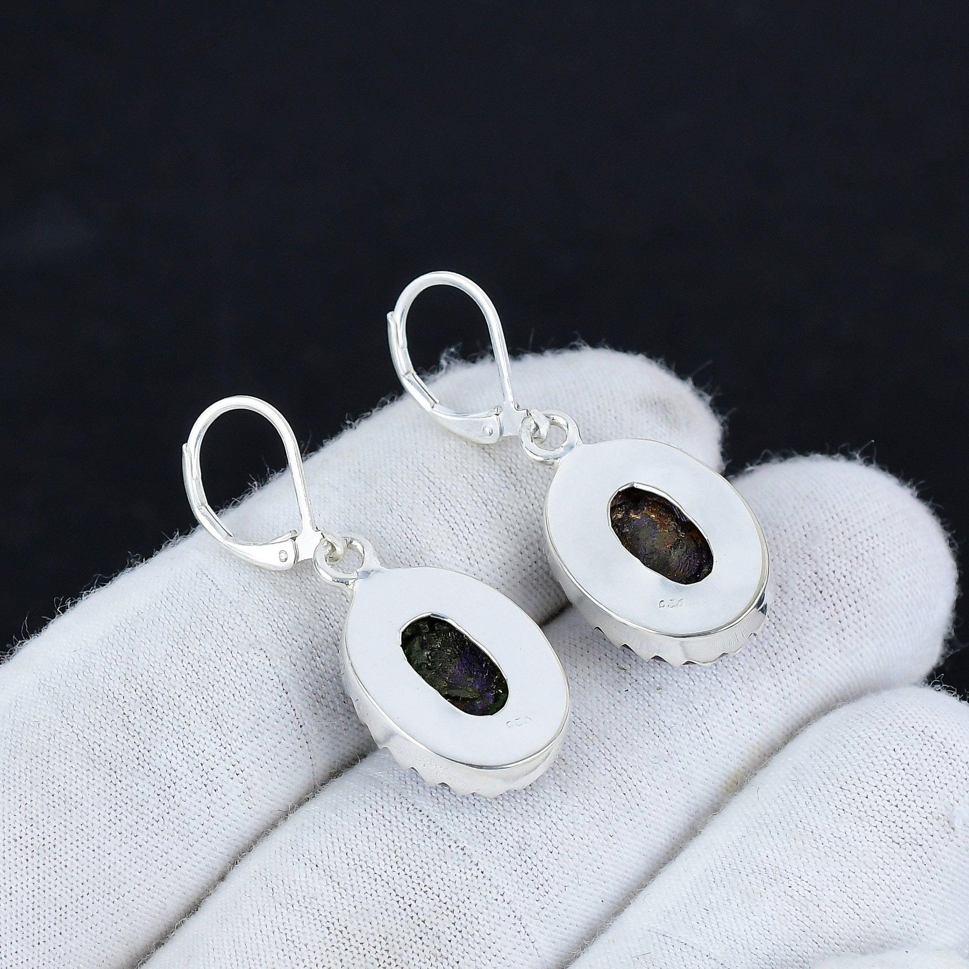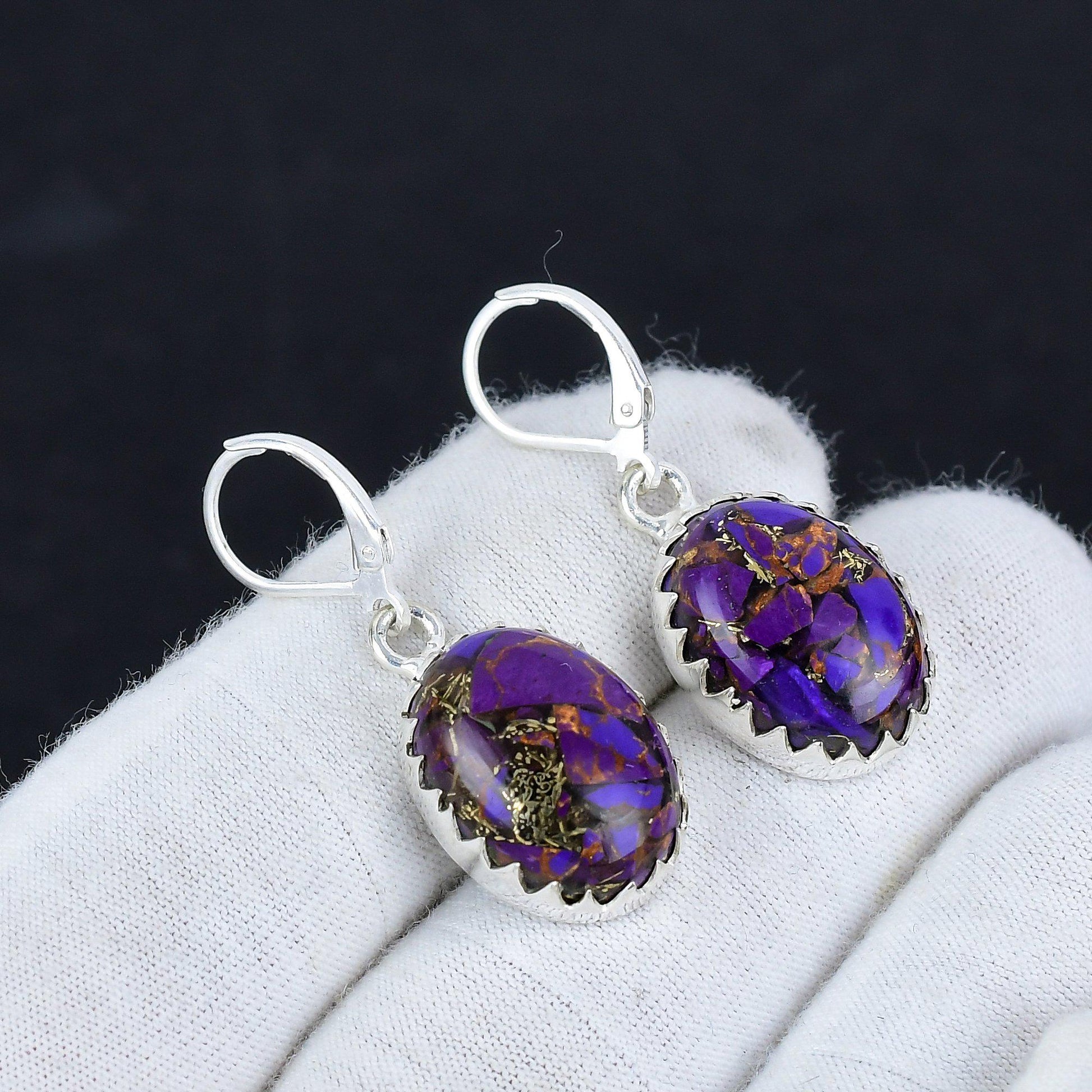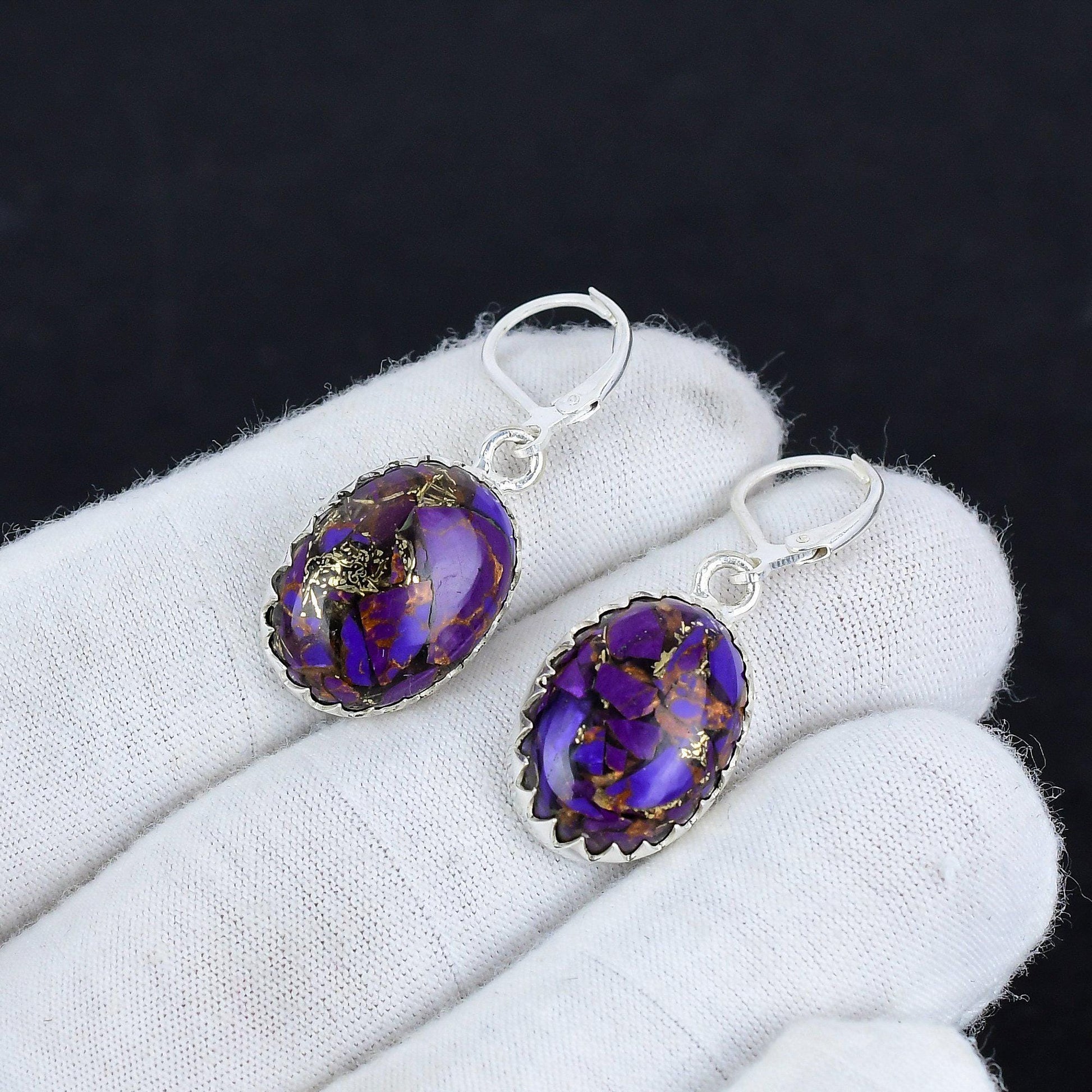 Crafted with meticulous attention to detail, these earrings feature stunning oval stones that beautifully combine deep purple hues with intricate gold veining, creating a captivating visual appeal.