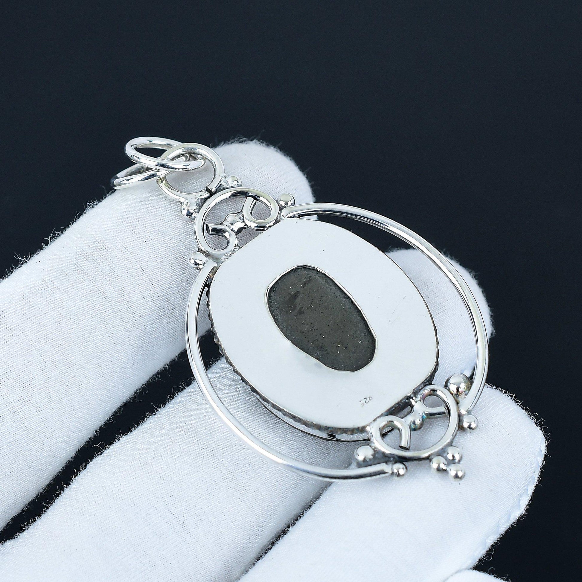 Introducing our exquisite Silver-Tone Oval Pendant featuring a sparkling, textured design that captures the light beautifully with every movement.