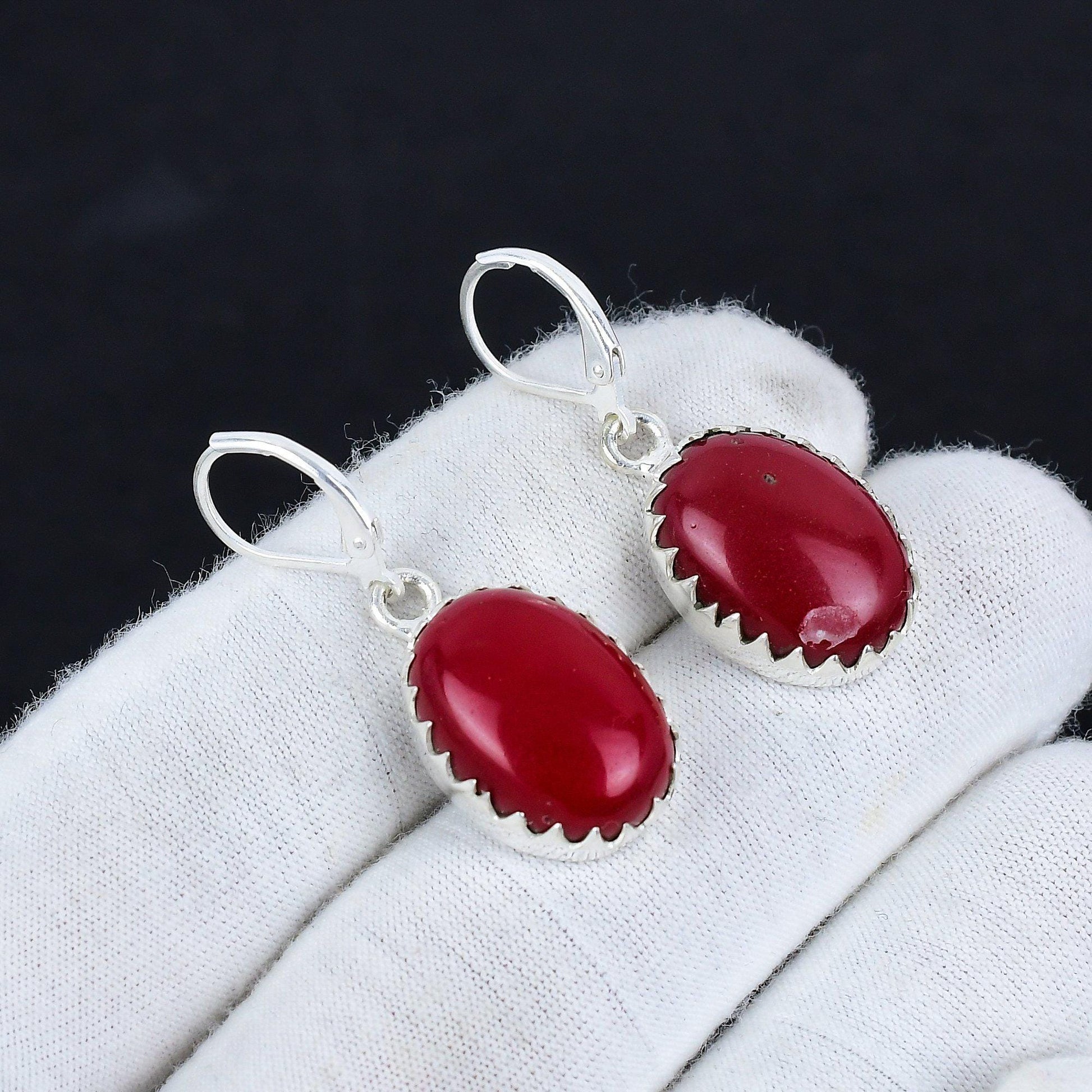Embrace elegance with our stunning red stone drop earrings.