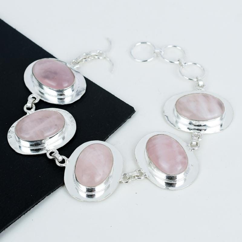 Featuring beautifully crafted oval pink gemstones set in a gleaming silver-toned chain, this bracelet is designed to captivate and charm.