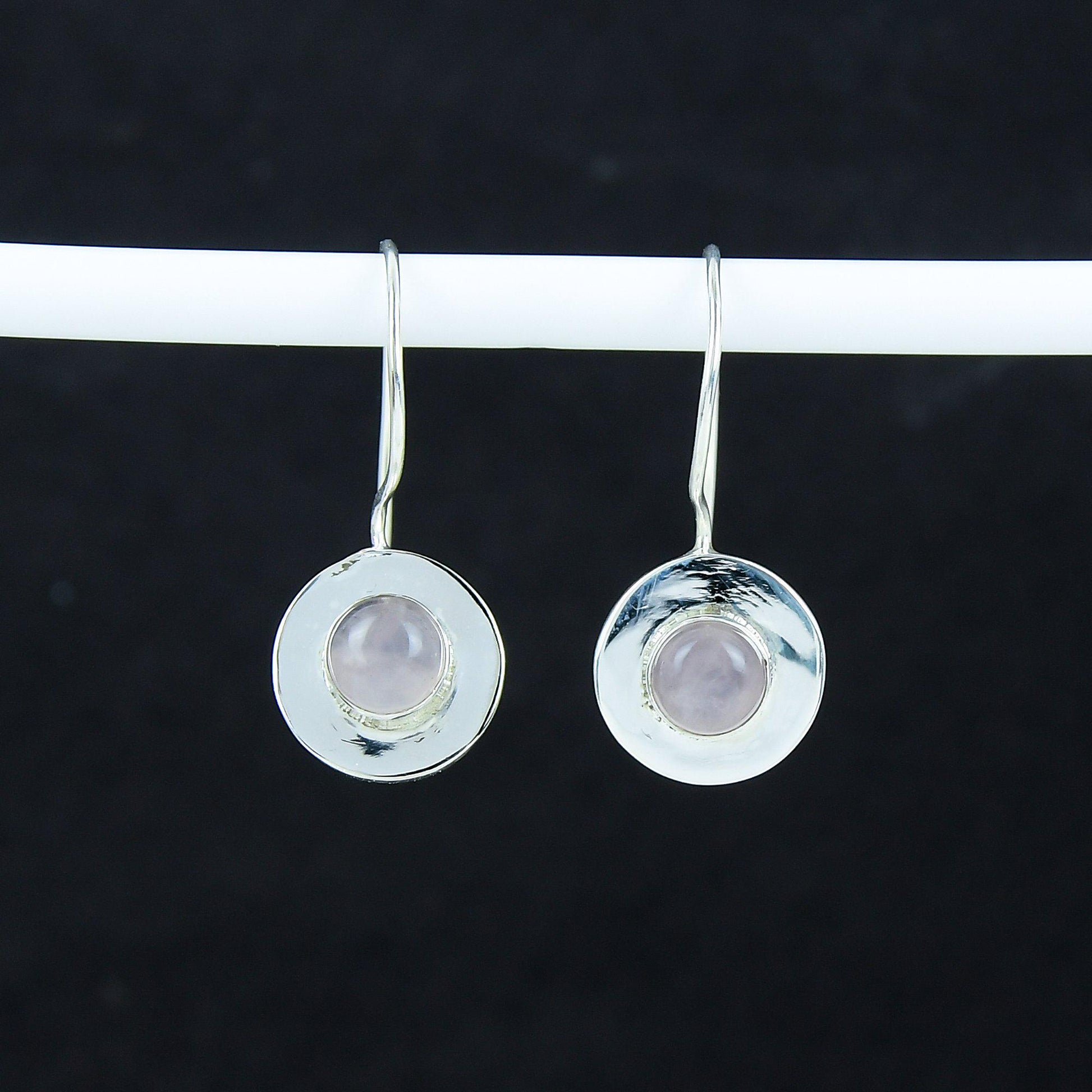 - Design: Crafted with precision, these earrings feature a captivating pink rose quartz stone set in a sleek sterling silver setting.