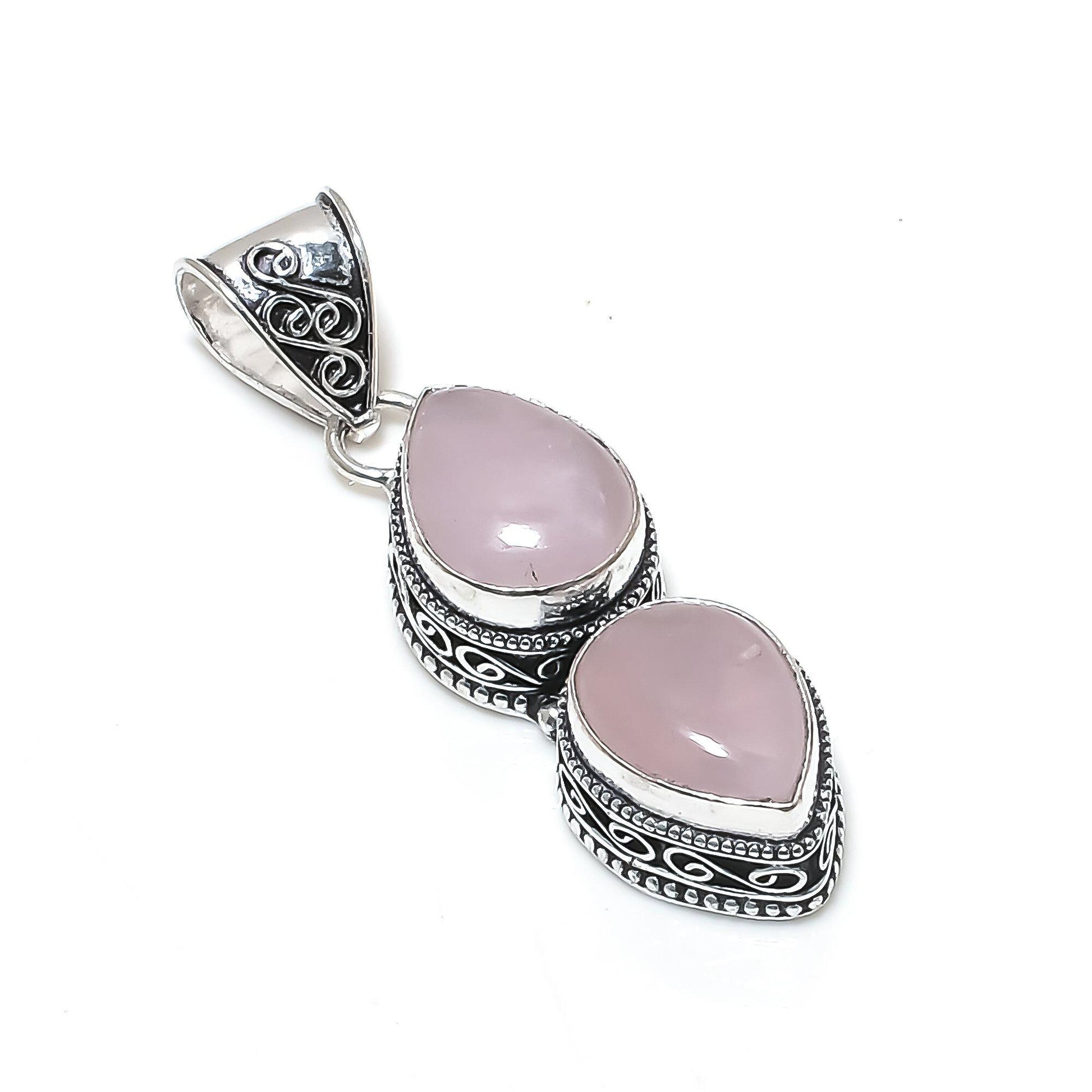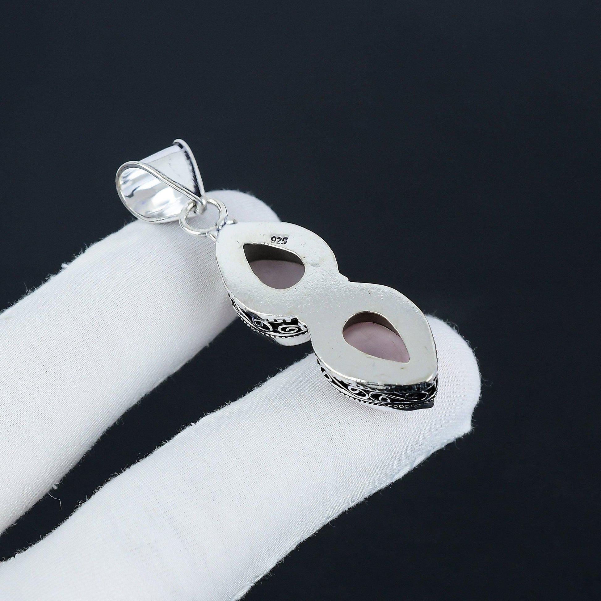 Crafted with passion and attention to detail, the pendant features two captivating pear-shaped gemstones that shimmer with a subtle pink hue.