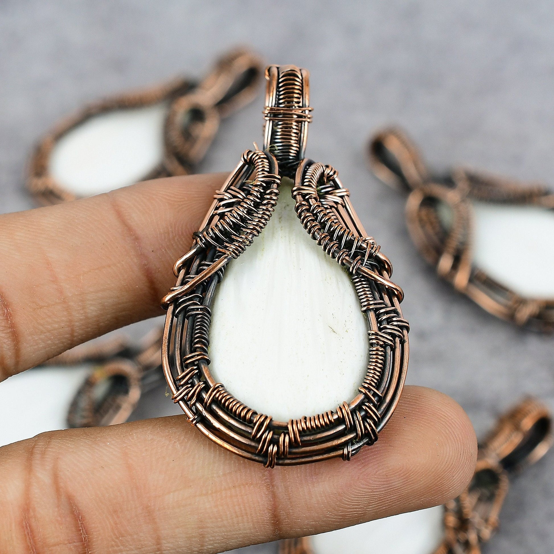 Discover the elegance of handcrafted artistry with our stunning Wire Wrapped Teardrop Pendant. This unique piece blends the natural beauty of bone with the intricate craftsmanship of metal wire, creating a one-of-a-kind accessory.