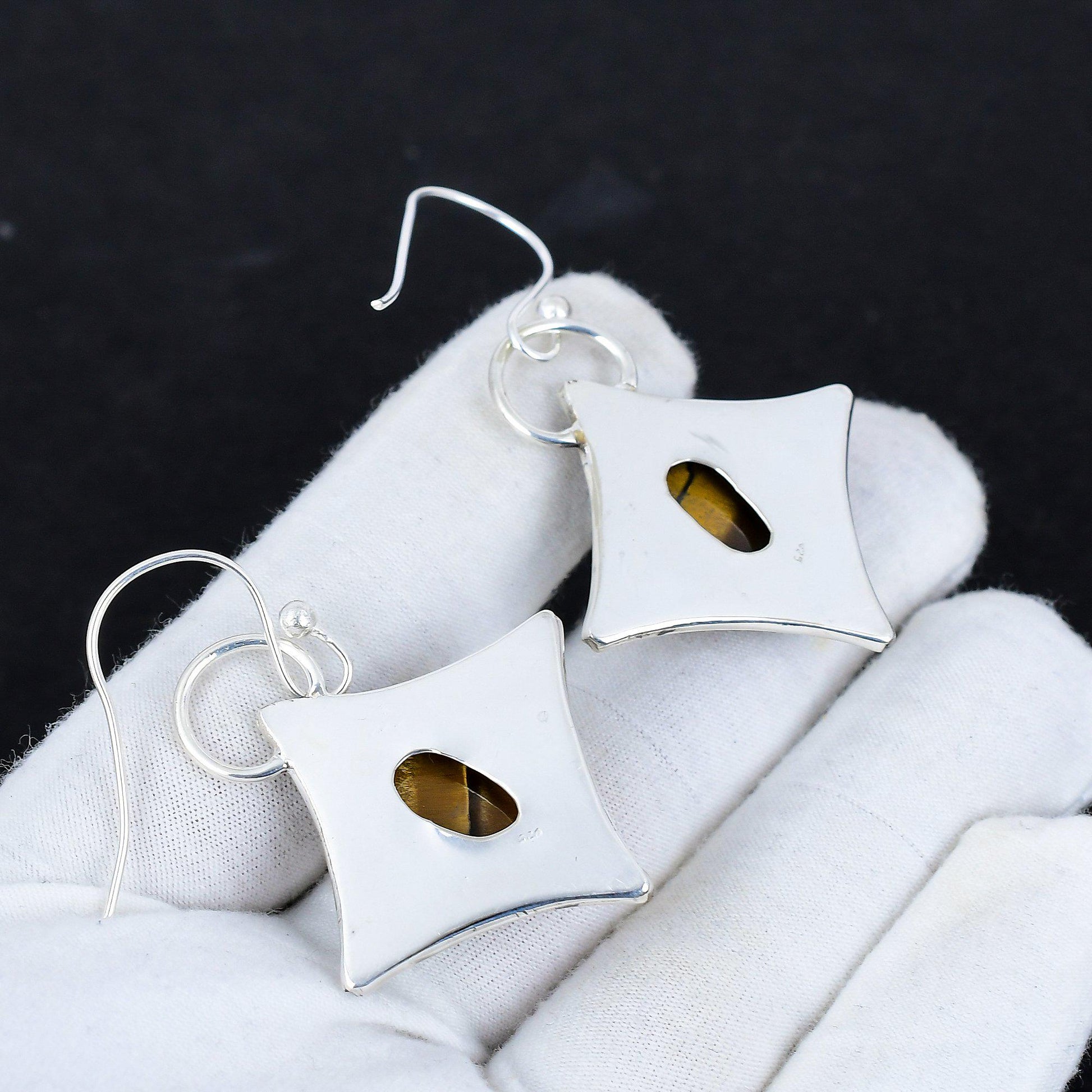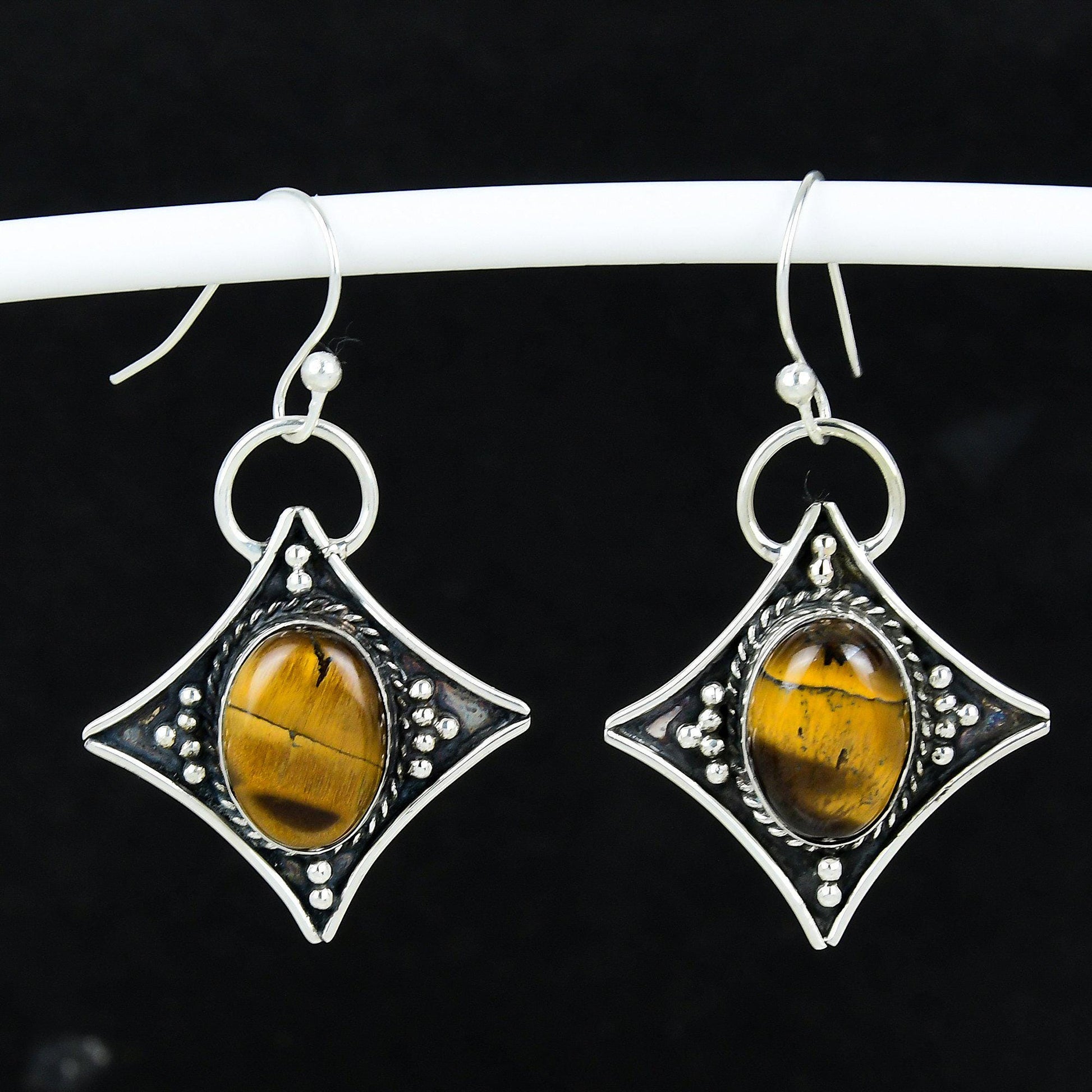 Introducing our exquisite handcrafted earrings, a perfect blend of elegance and charm. Each piece features a stunning tiger's eye gemstone, known for its captivating golden-brown hues and unique patterns.