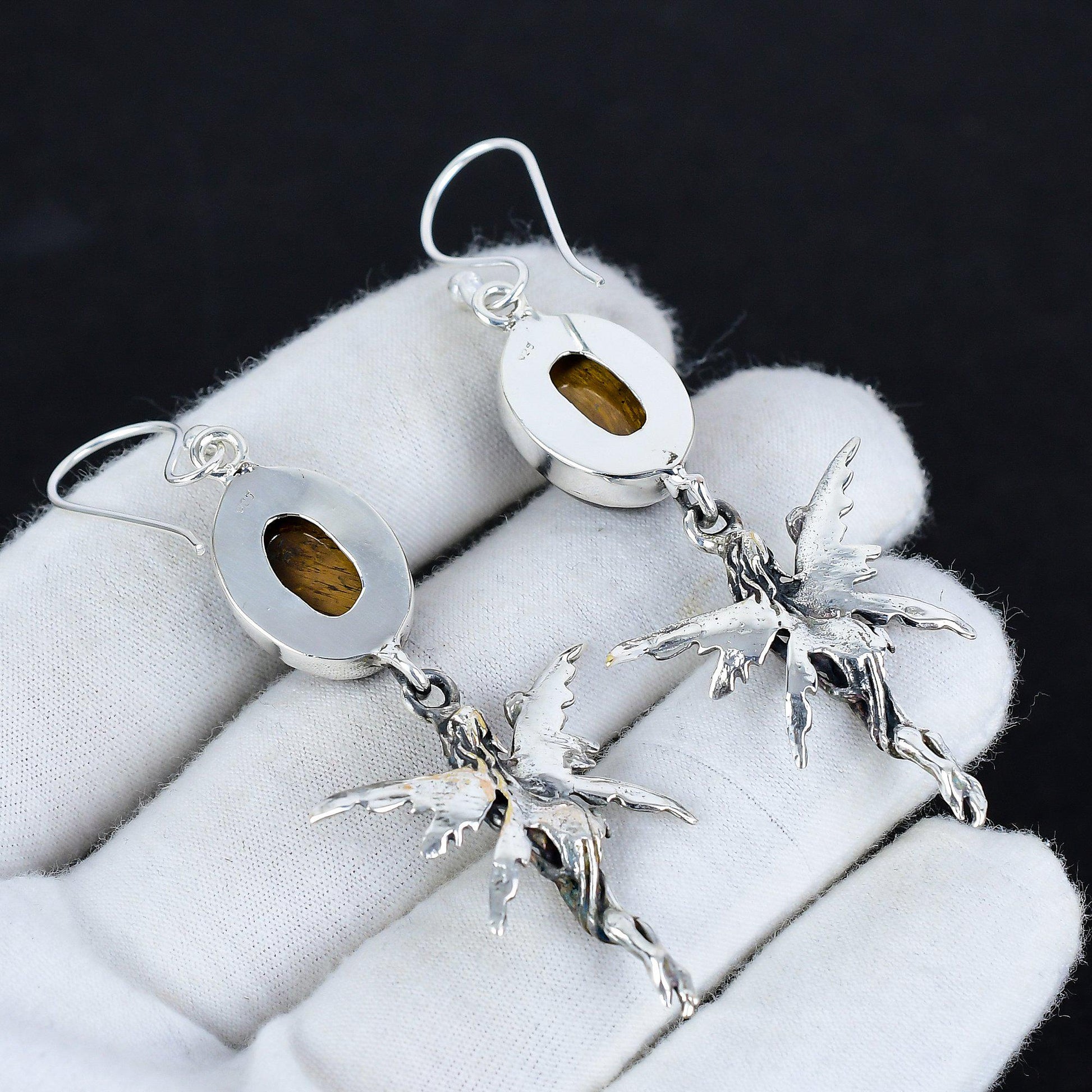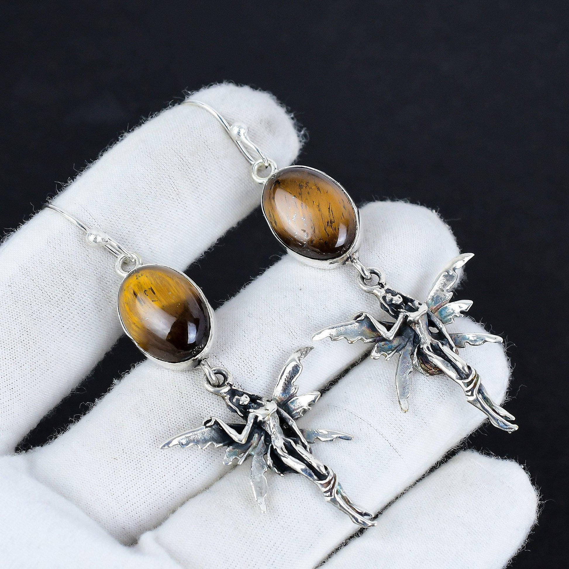 Design: Each piece features a beautifully detailed fairy figure, elegantly suspended beneath an oval tiger's eye stone, capturing the essence of fantasy.