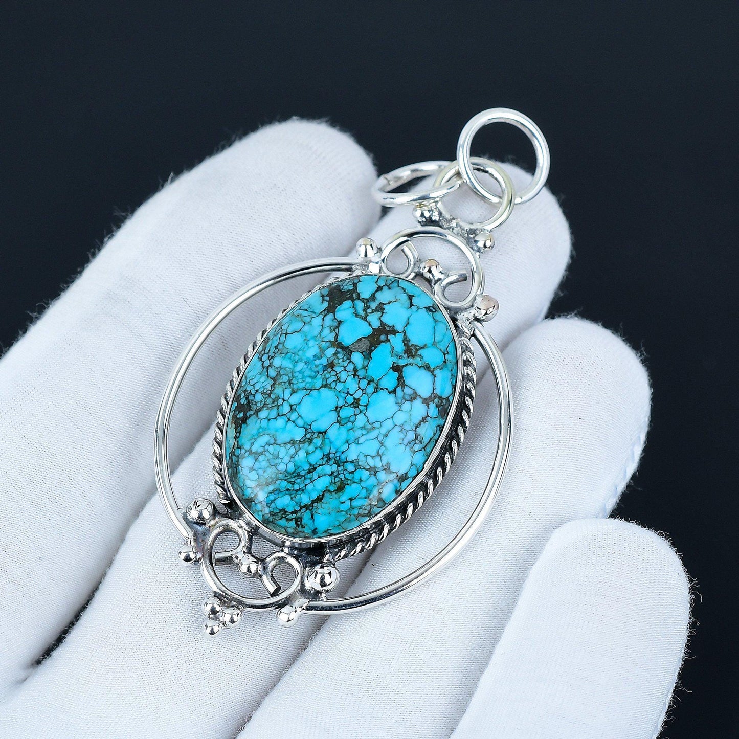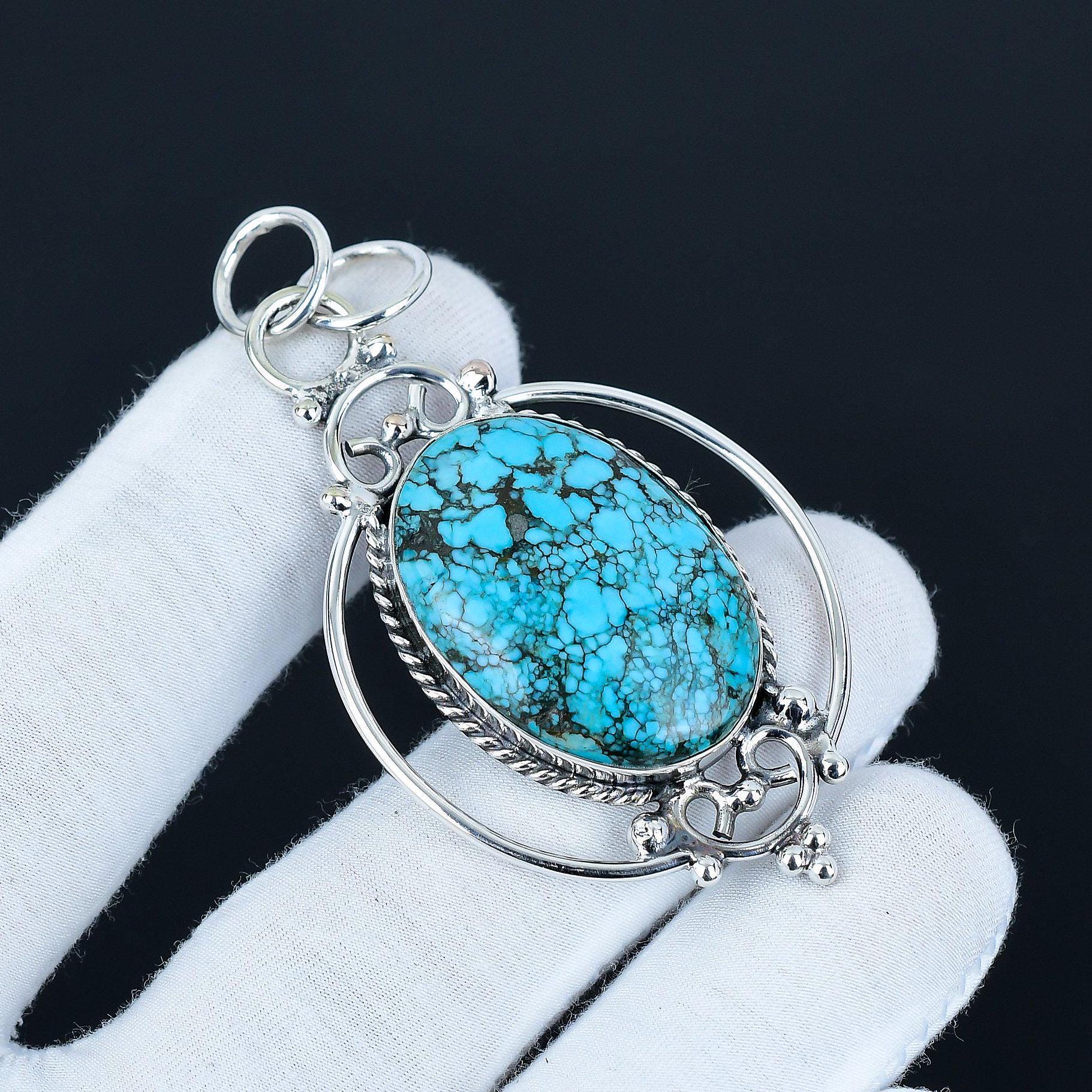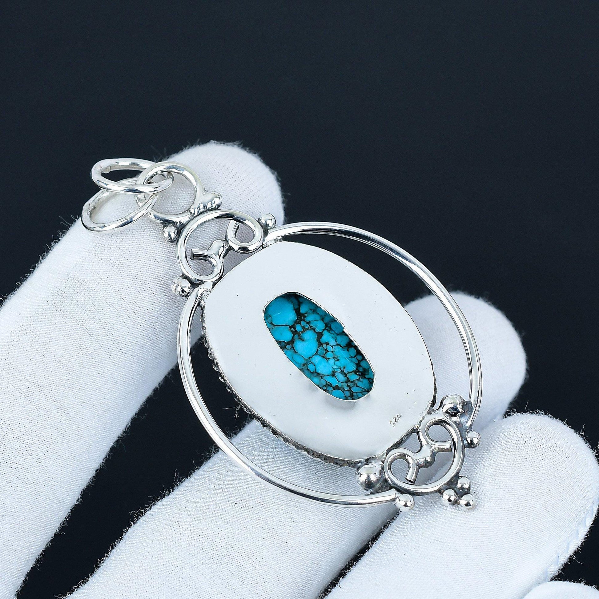 Featuring a striking oval turquoise stone enveloped in an intricate silver frame, this pendant exudes timeless charm and grace.