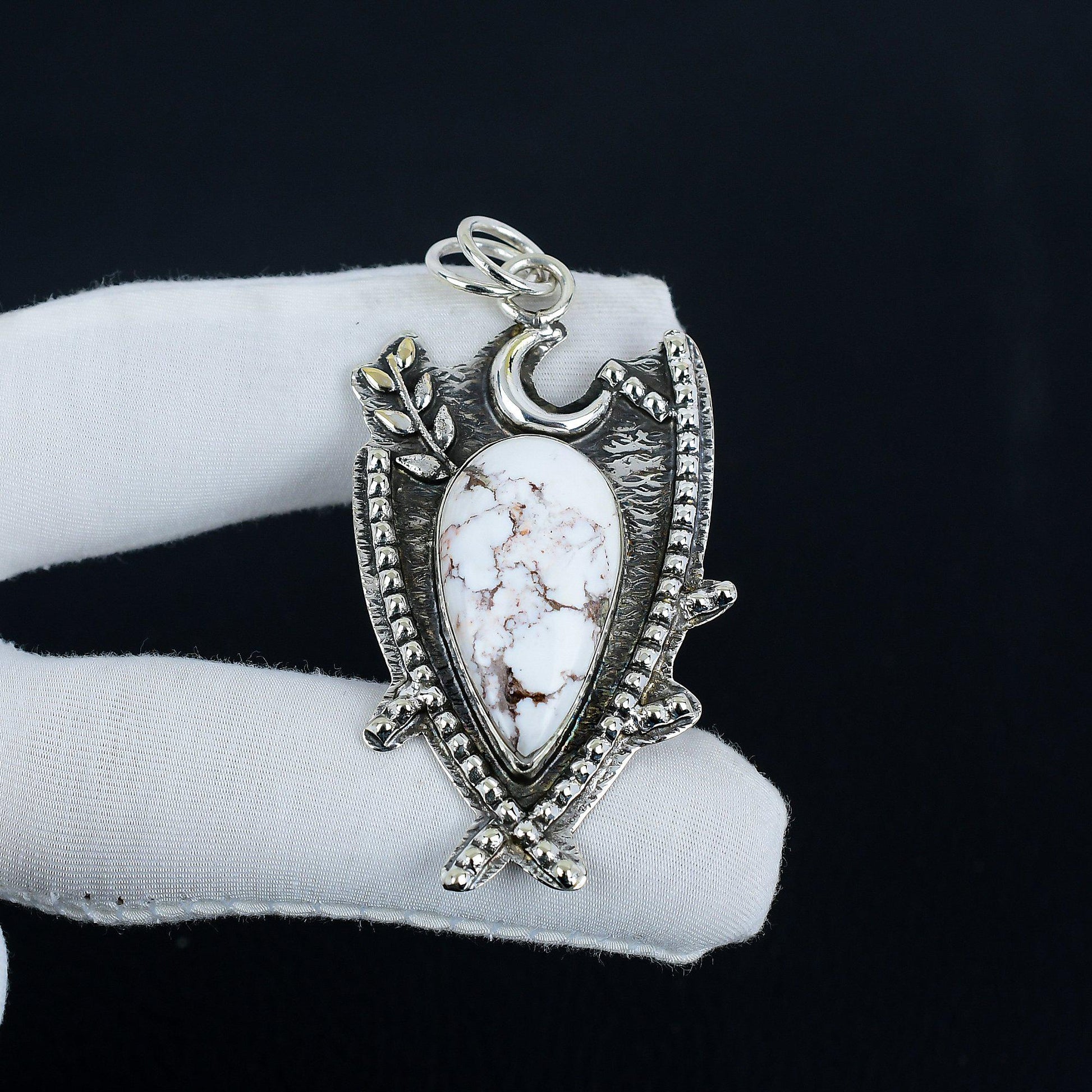 Embrace timeless elegance with our exquisite pendant, featuring a stunning white marbled gemstone set in a beautifully detailed silver frame.
