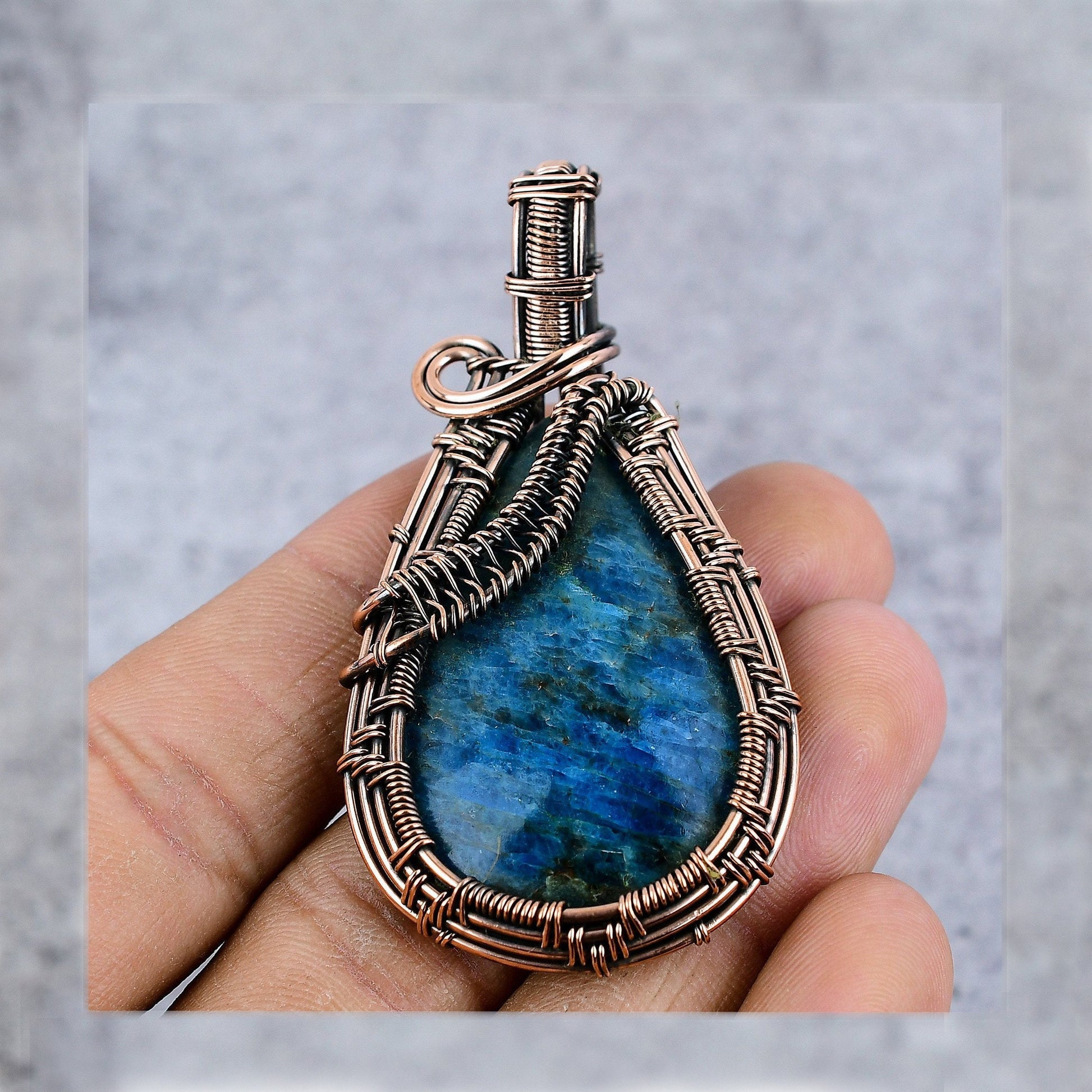 Featuring a mesmerizing blue stone, each piece is meticulously hand-wrapped in high-quality copper wire, ensuring a blend of elegance and uniqueness.