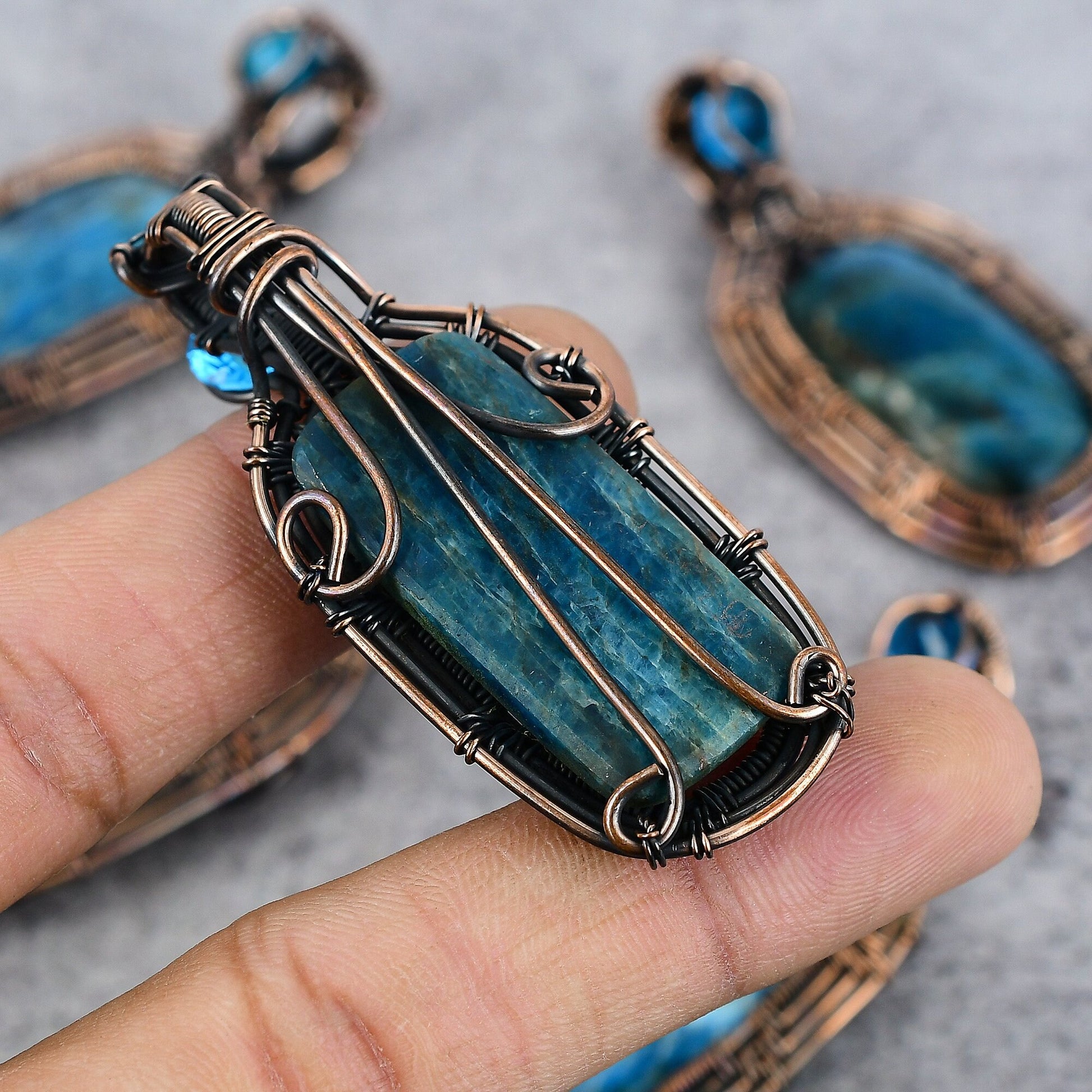 Encased in a meticulously woven copper wire setting, the intricate design showcases a blend of artistry and craftsmanship, making each piece truly one-of-a-kind.