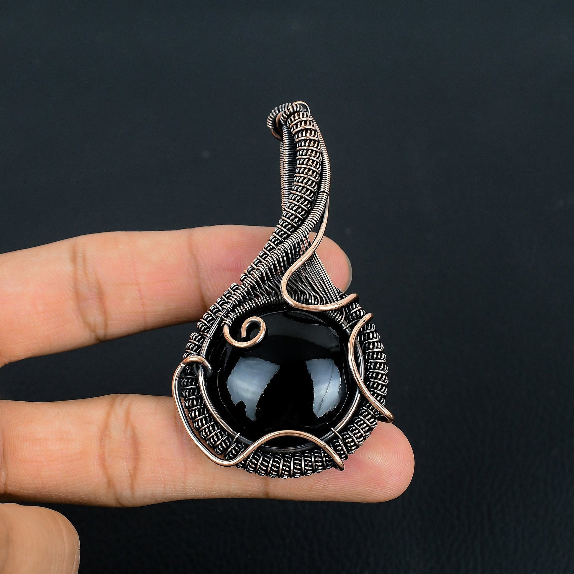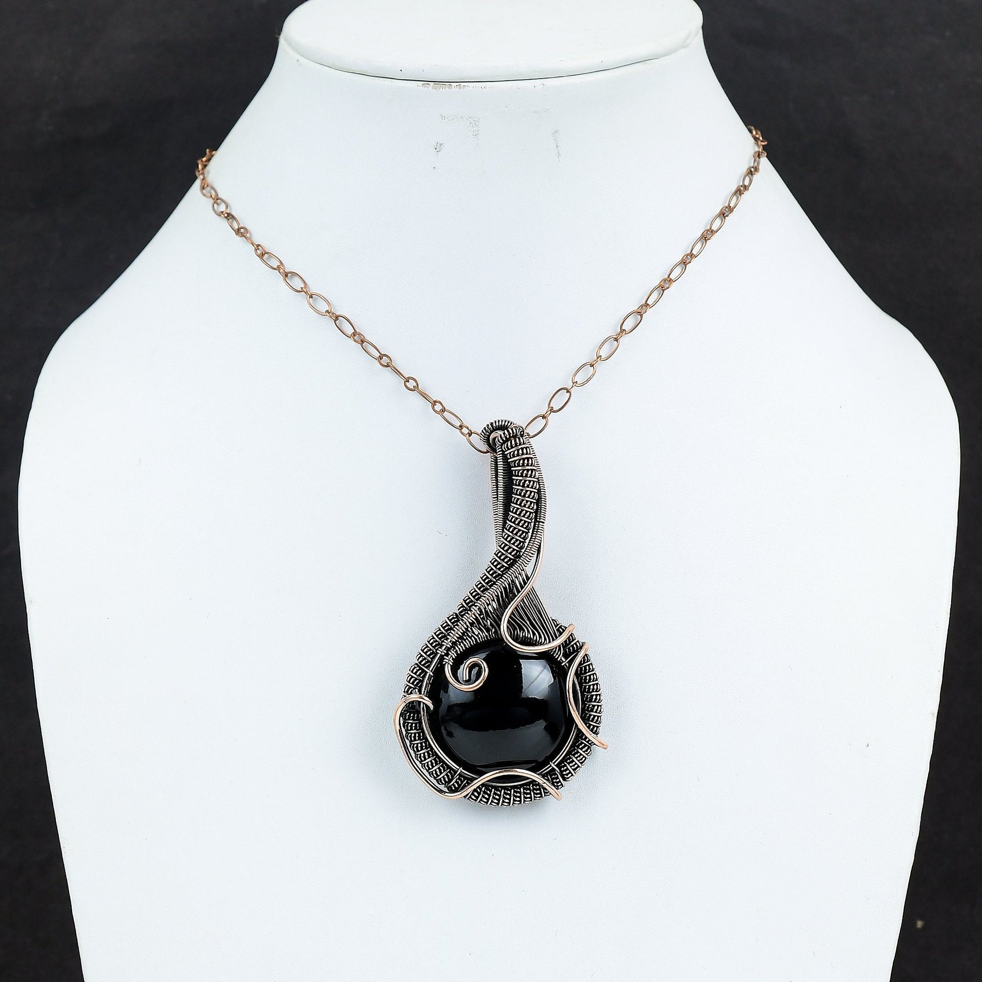 Discover the elegance of timeless design with our handcrafted Black Onyx Pendant. This stunning piece features a beautifully polished black onyx stone, artistically wrapped in intricate copper wire that showcases the artisan’s exquisite craftsmanship.