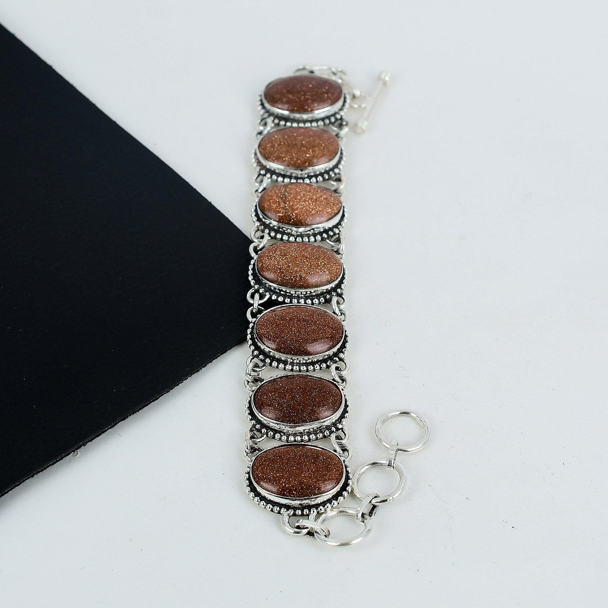 Enhance your elegance with this exquisite statement bracelet, featuring seven captivating brown gemstone cabochons.