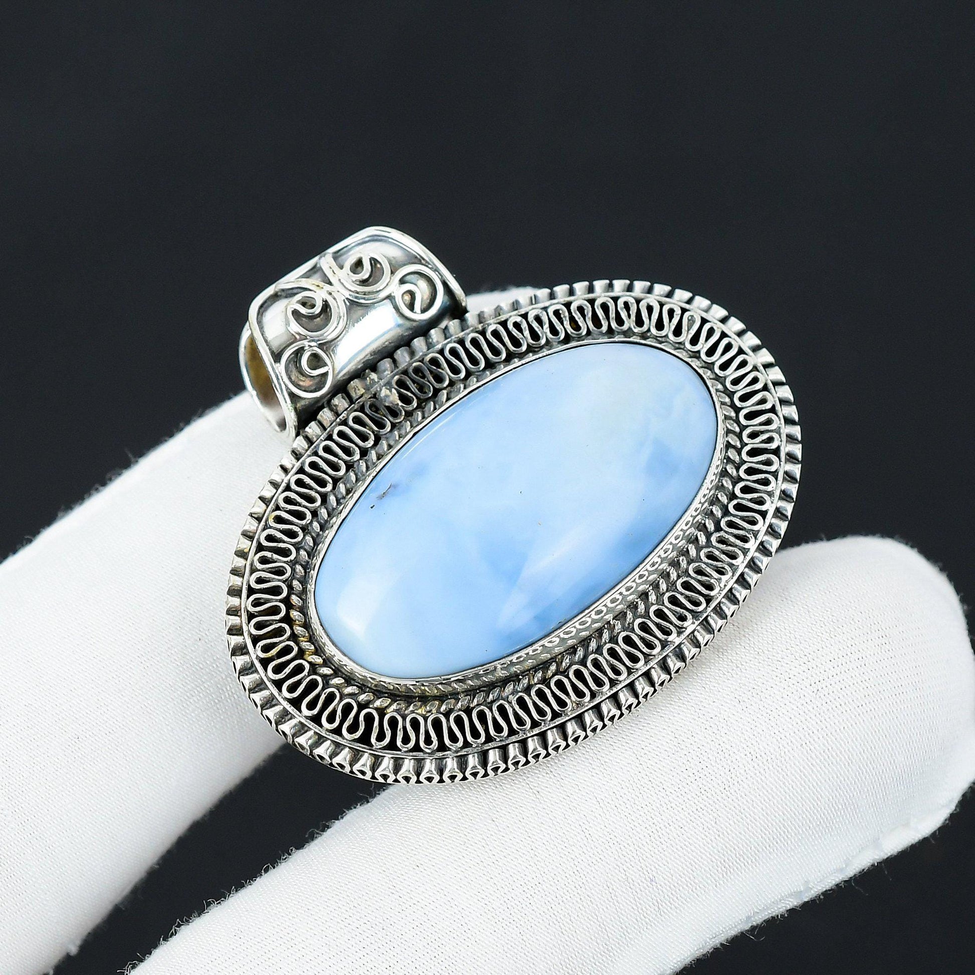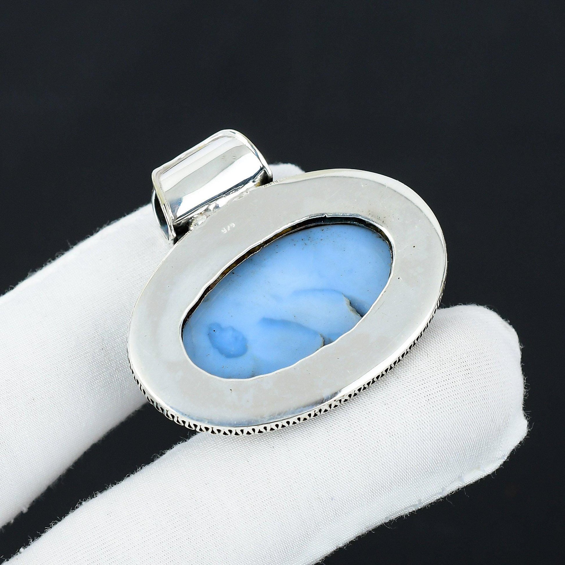 Crafted with meticulous attention to detail, this pendant features a captivating blue stone, beautifully set in a stunning silver frame with intricate patterns.