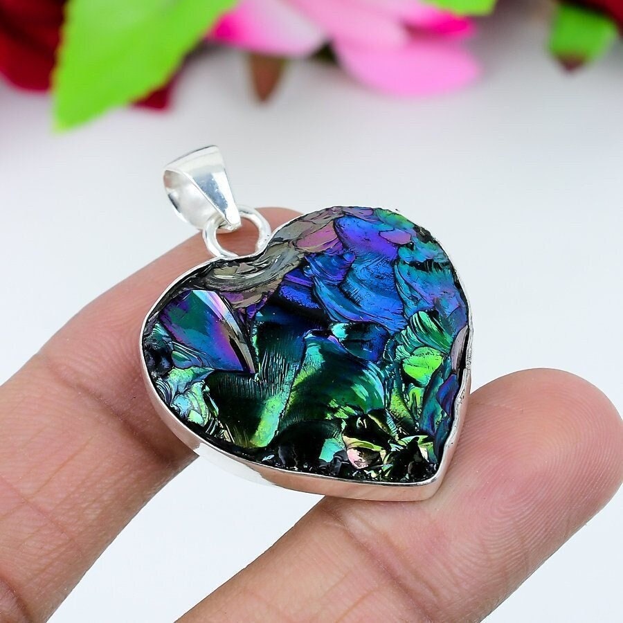 Discover the enchanting beauty of our iridescent heart pendant, crafted with exquisite detail and vibrant colors that dance with every movement.