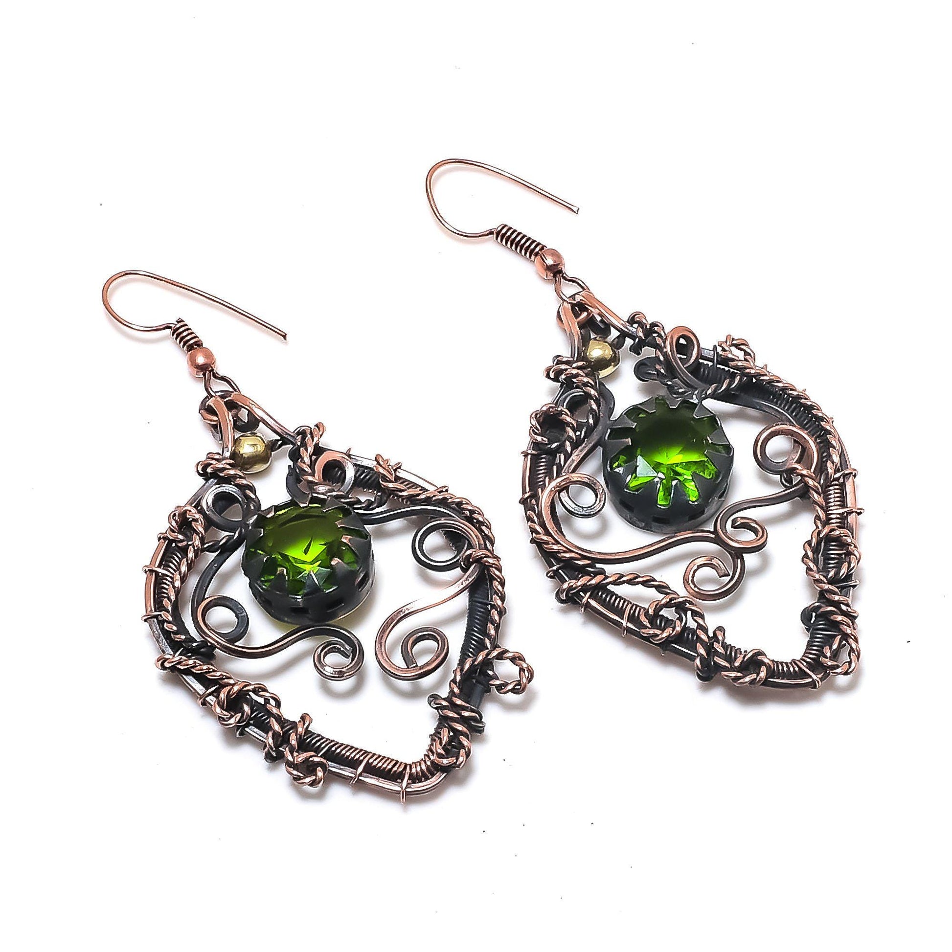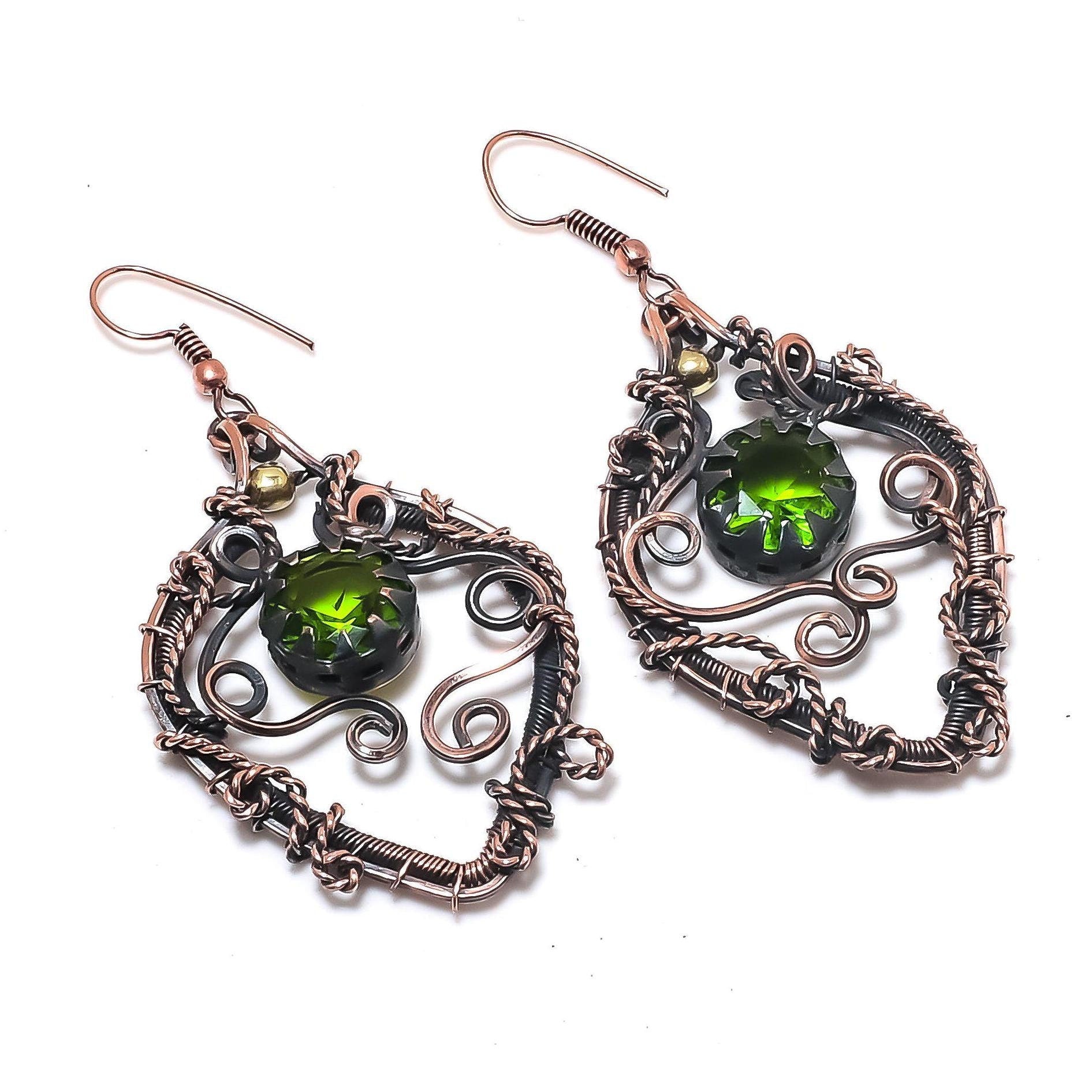 Discover the allure of our exquisite handcrafted earrings, featuring intricate copper wirework that highlights an enchanting gemstone centerpiece.