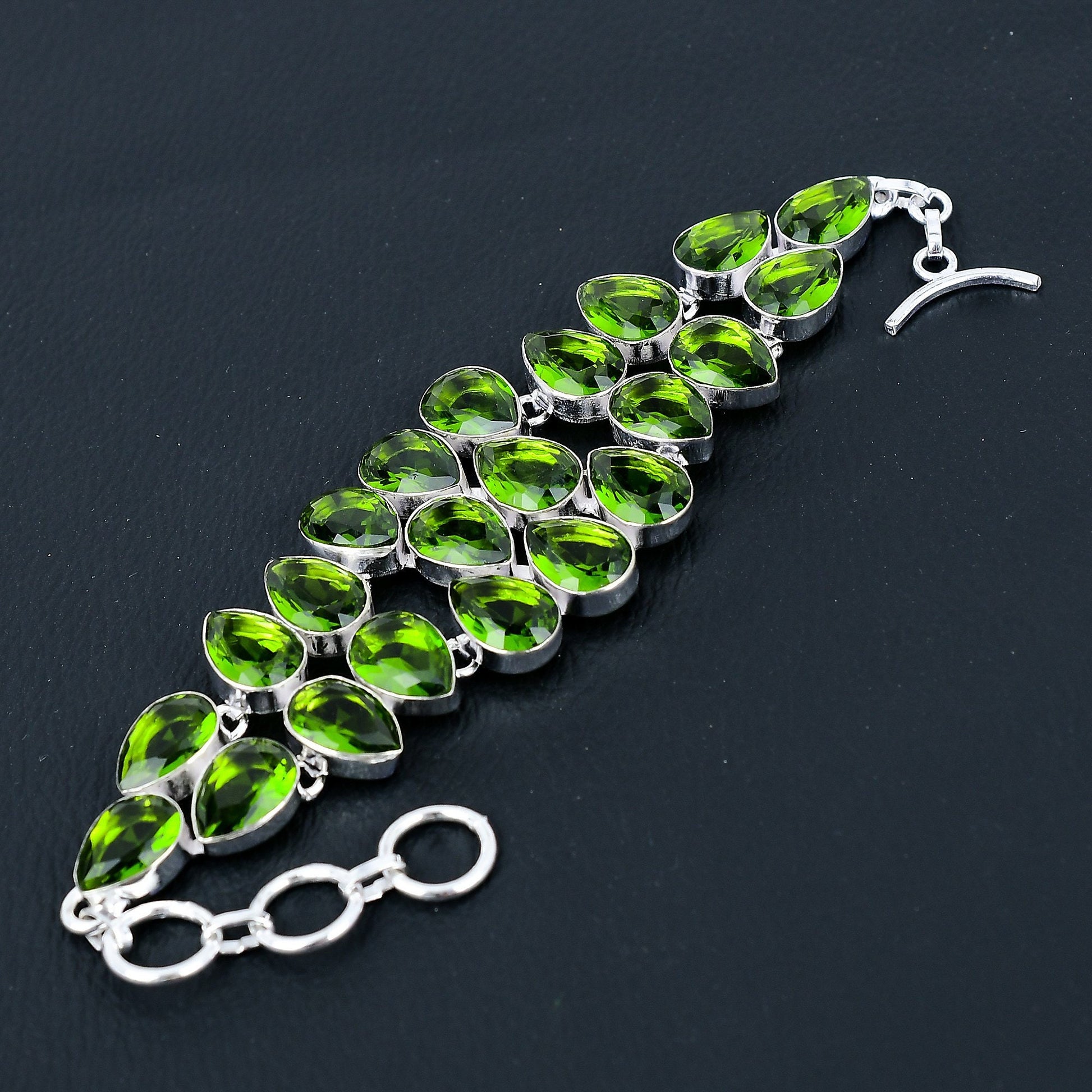 Experience elegance and sophistication with our exquisite green gemstone bracelet.