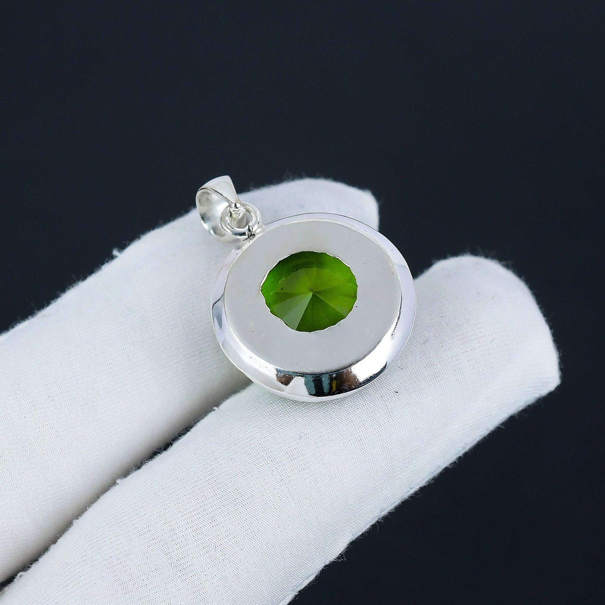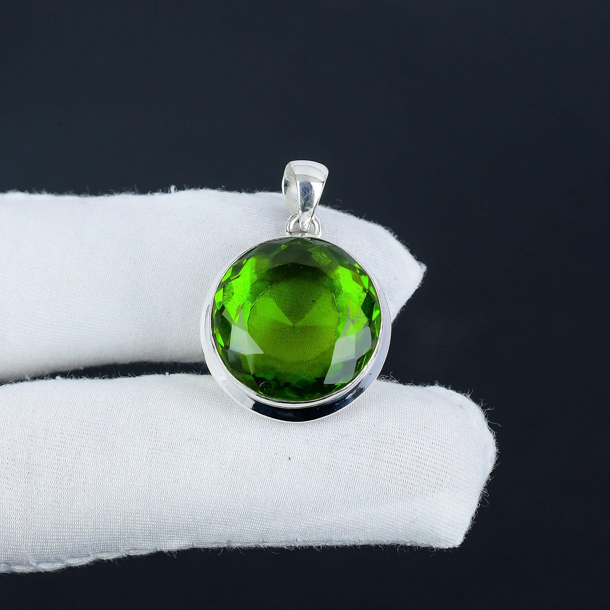 The vibrant green hue is encased in a sleek, sterling silver bezel setting, offering a stunning contrast that's sure to captivate.