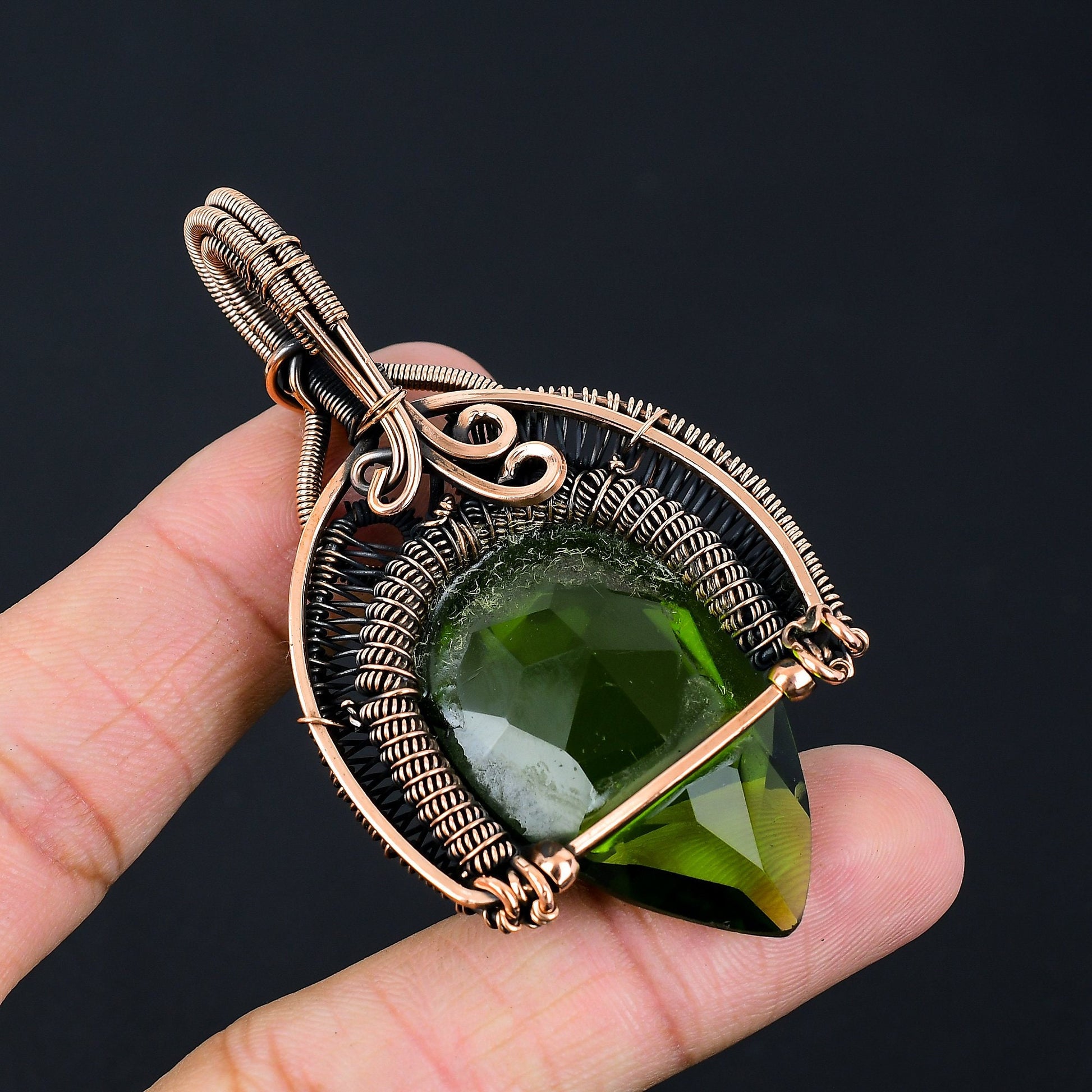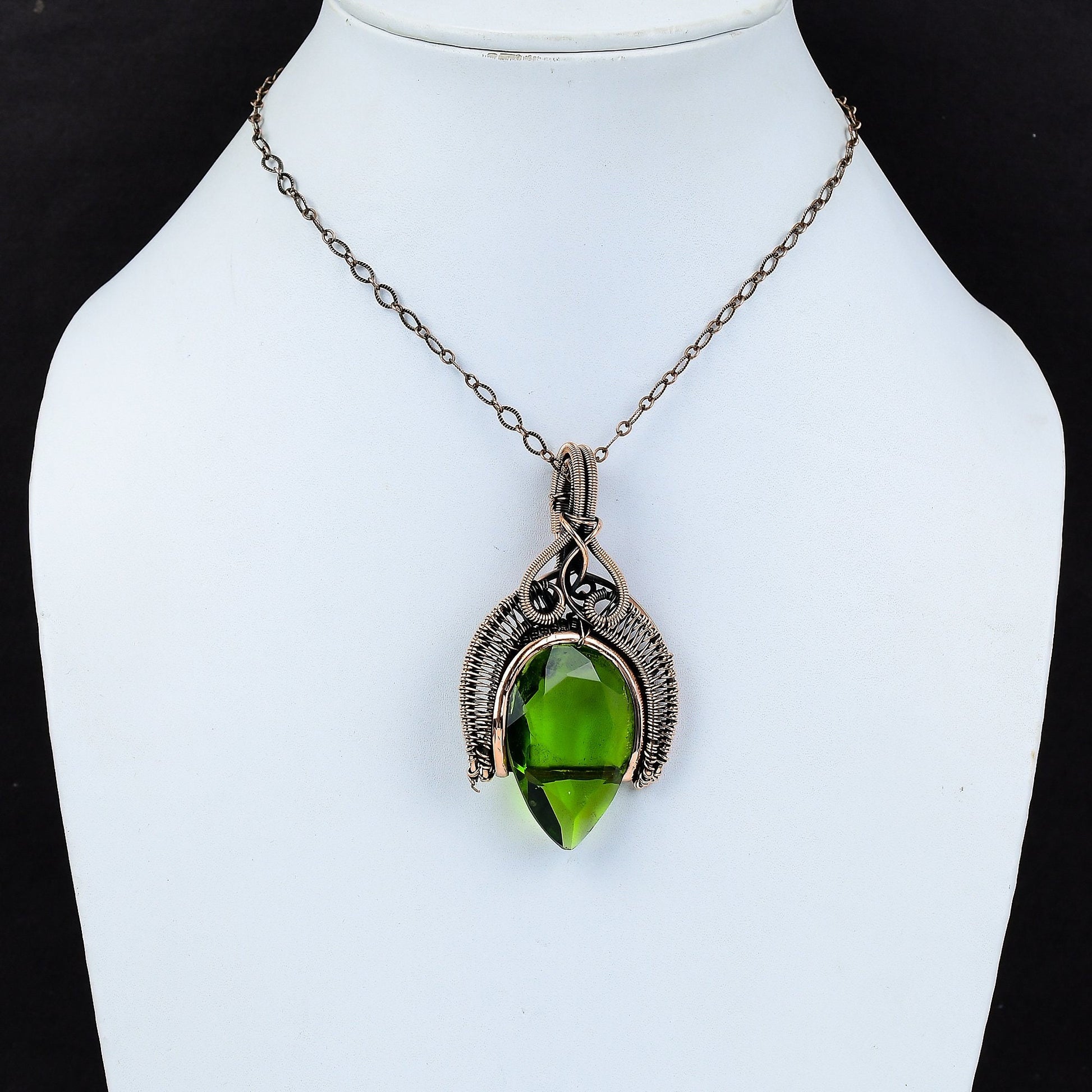 Experience the elegance of our handcrafted wire-wrapped pendant, featuring a captivating green gemstone. This unique piece is an exquisite addition to any jewelry collection.