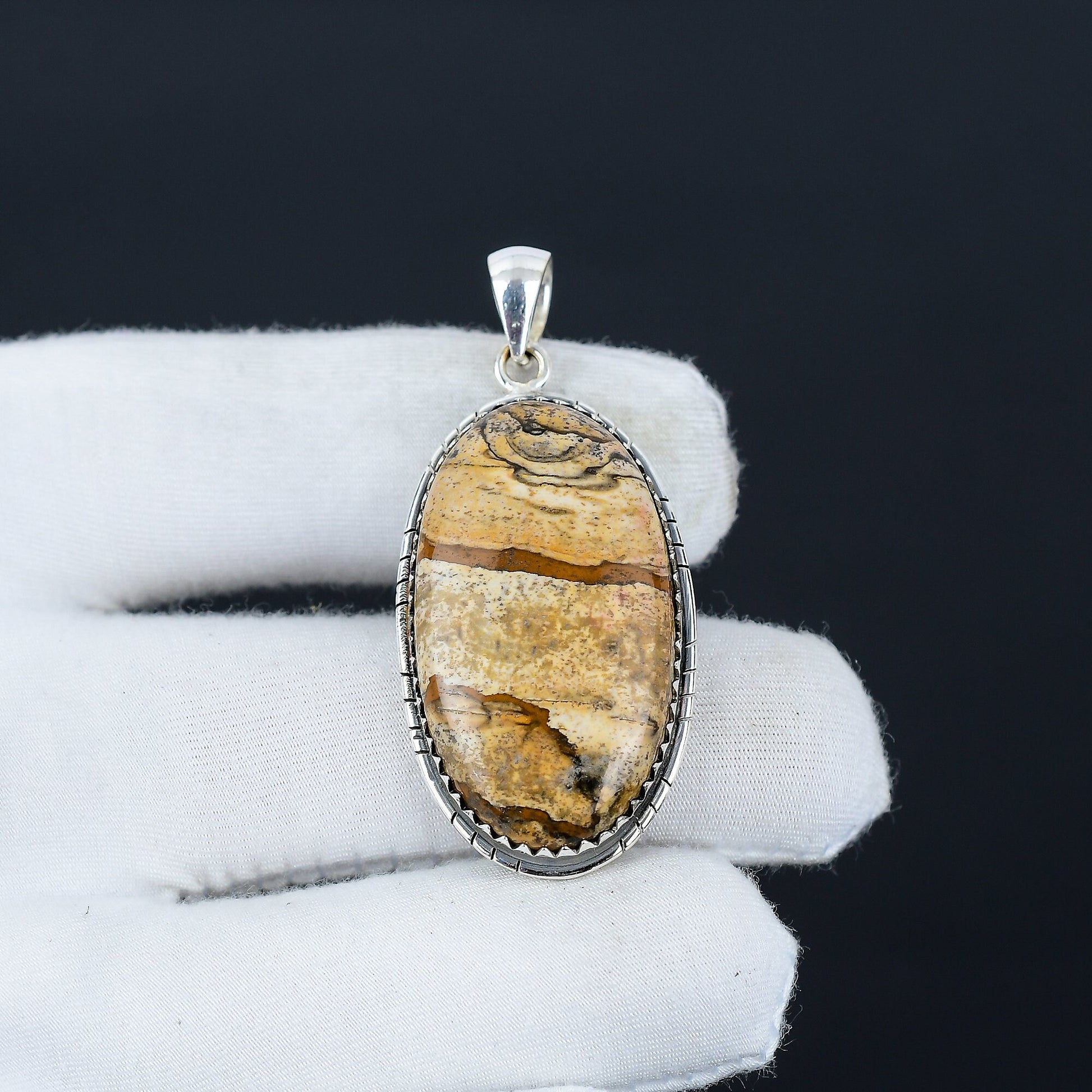 Elevate your elegance with this exquisite Oval Stone Pendant, beautifully set in sterling silver. The unique patterns of the stone add an earthy allure, making each piece truly one-of-a-kind.