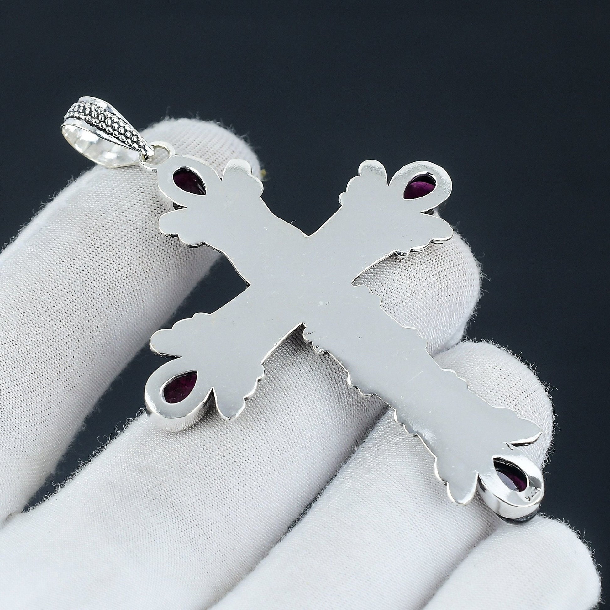 Expertly crafted from high-quality, durable materials, ensuring lasting shine and wear. Adorned with rich garnet-like stones, each carefully set to enhance the pendant's allure.