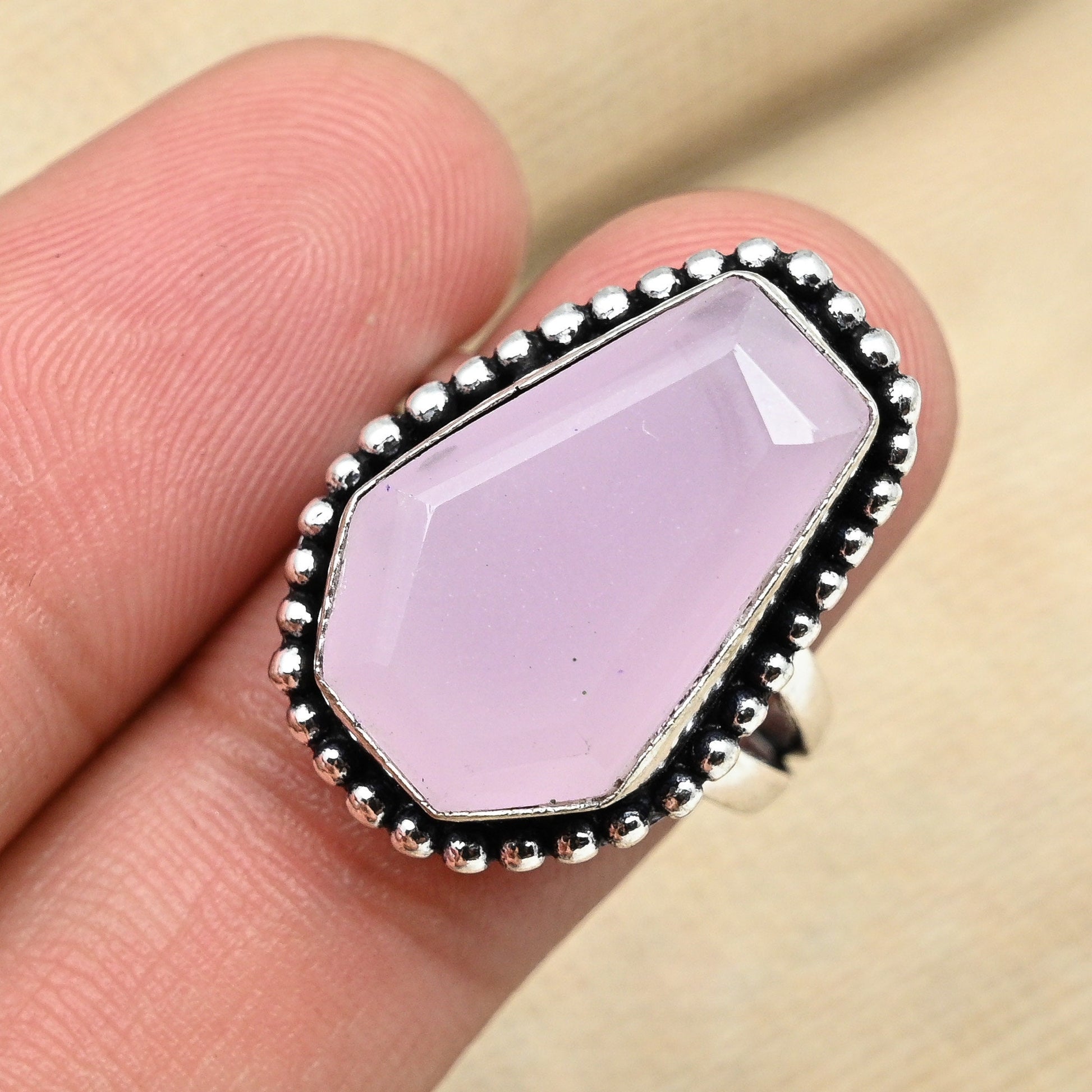Elevate your style with our exquisite handcrafted ring, featuring a stunning lavender gemstone set in a beautifully detailed silver band.