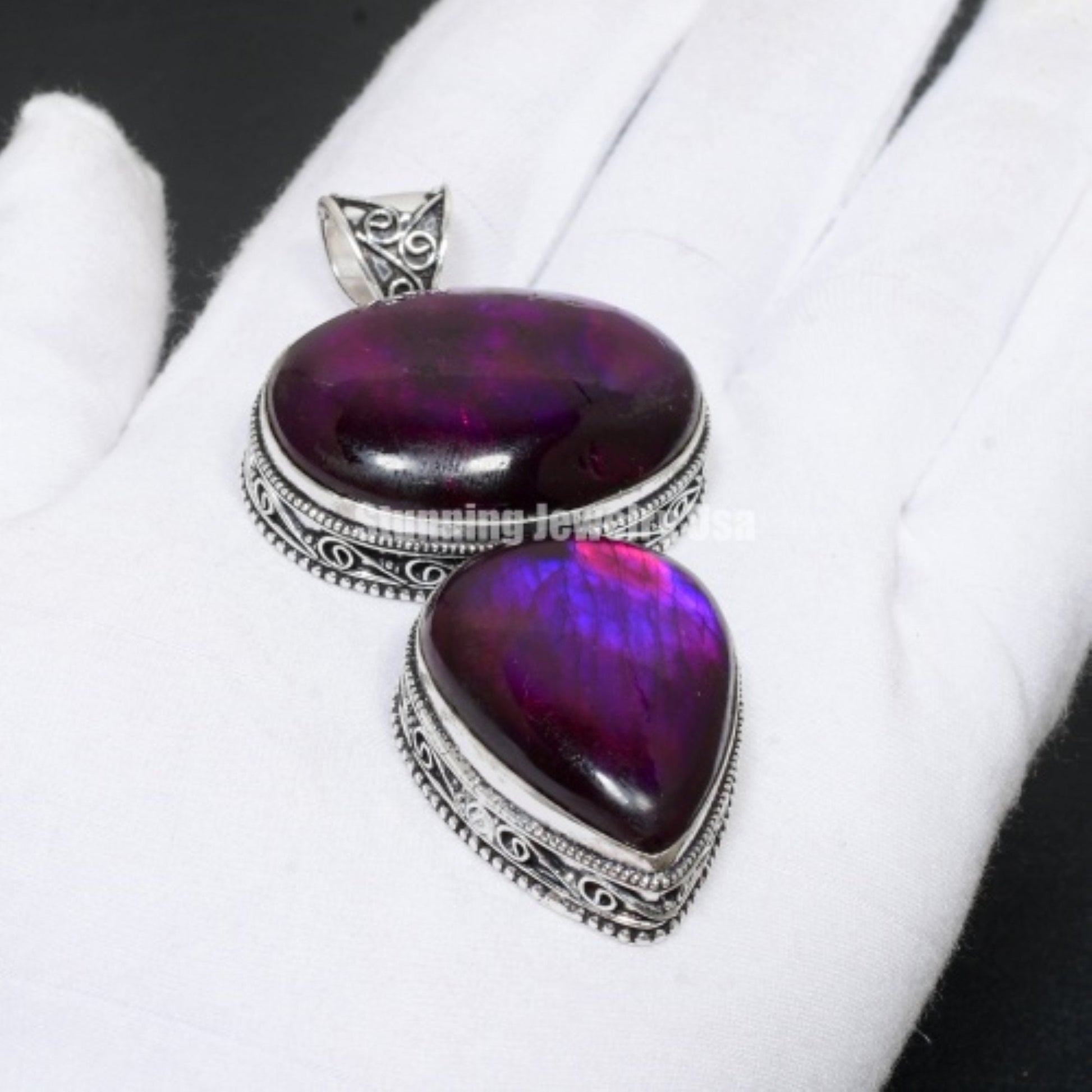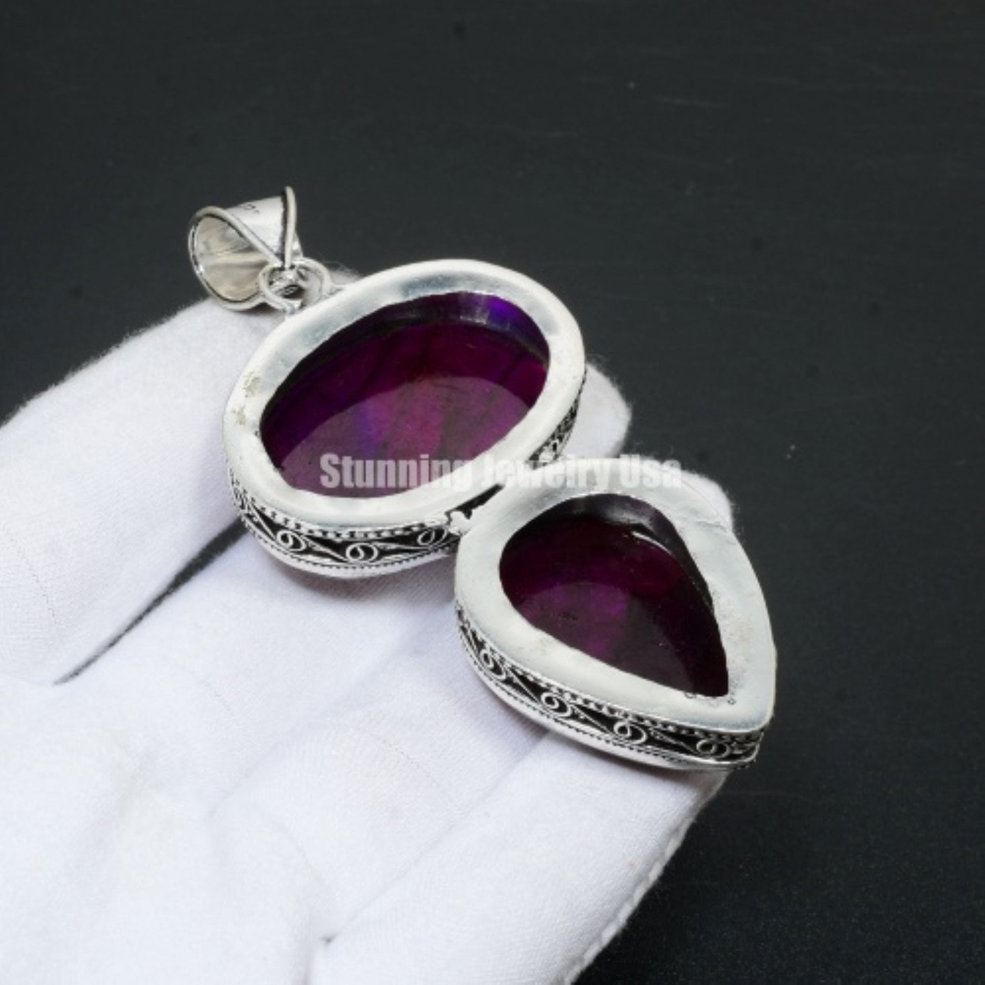 Immerse yourself in elegance with our exquisite handcrafted gemstone pendant. This stunning piece features a deep, rich purple stone set in intricately designed silver, capturing the essence of timeless beauty.