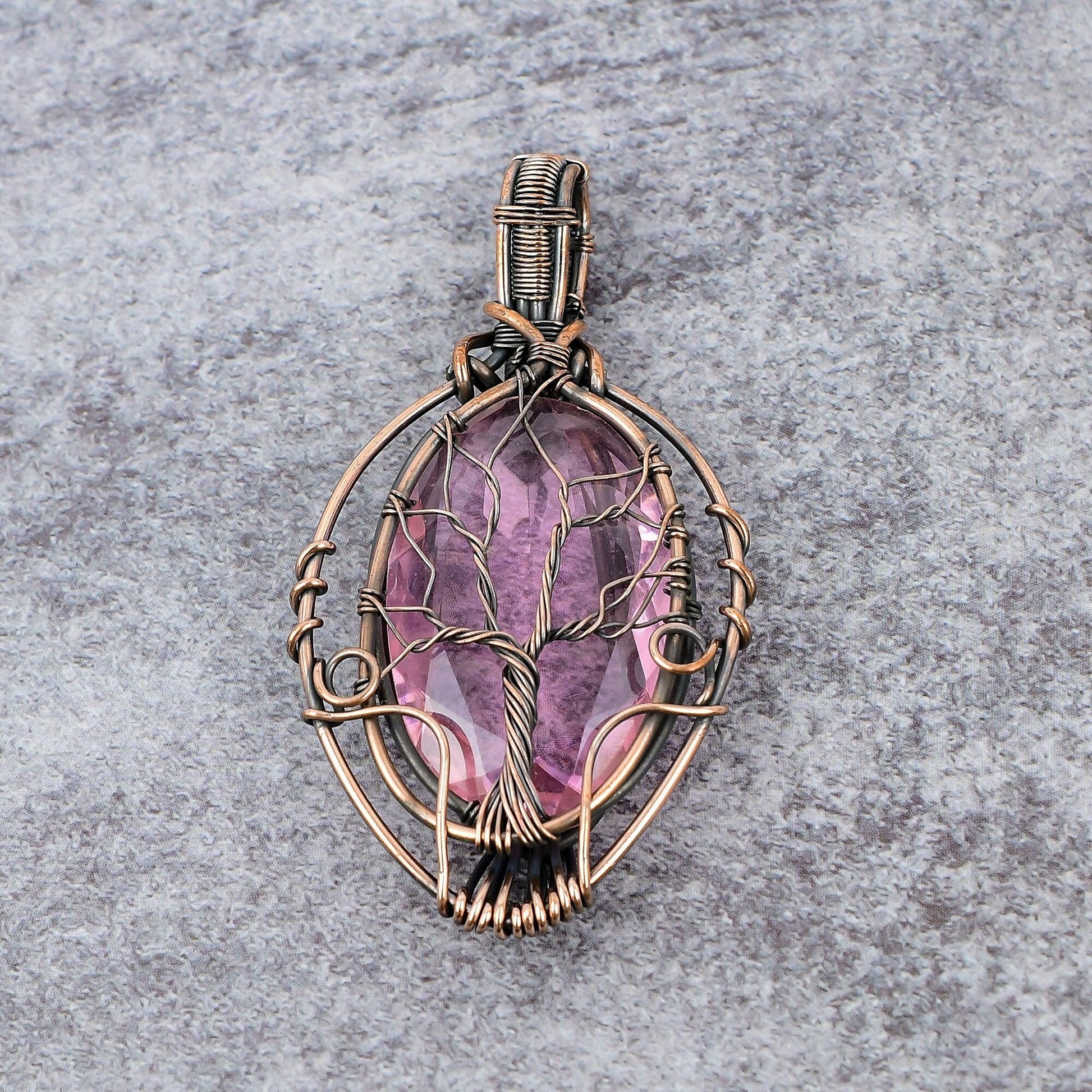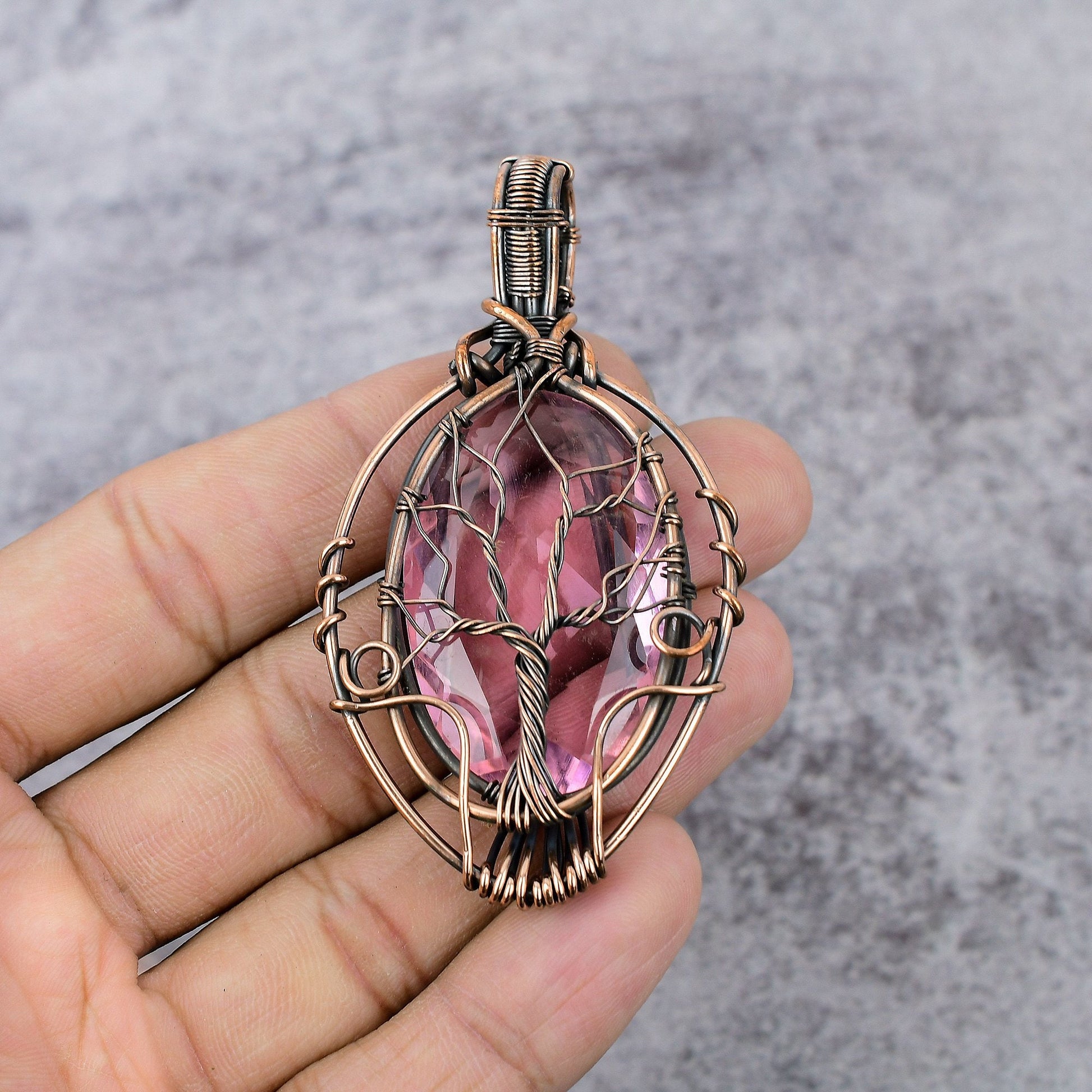 Meticulously crafted with intricate wirework, this pendant features a stunning pink gemstone, radiating a soft, enchanting glow.