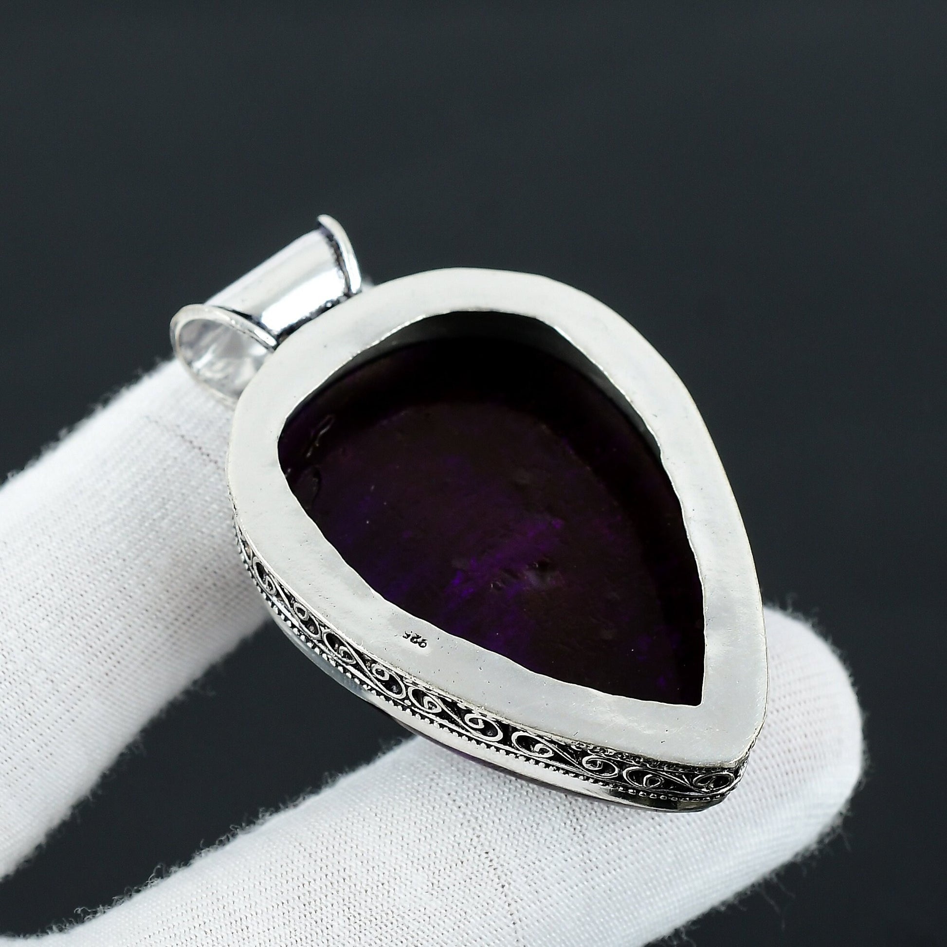 Immerse yourself in elegance with this exquisite purple teardrop pendant.