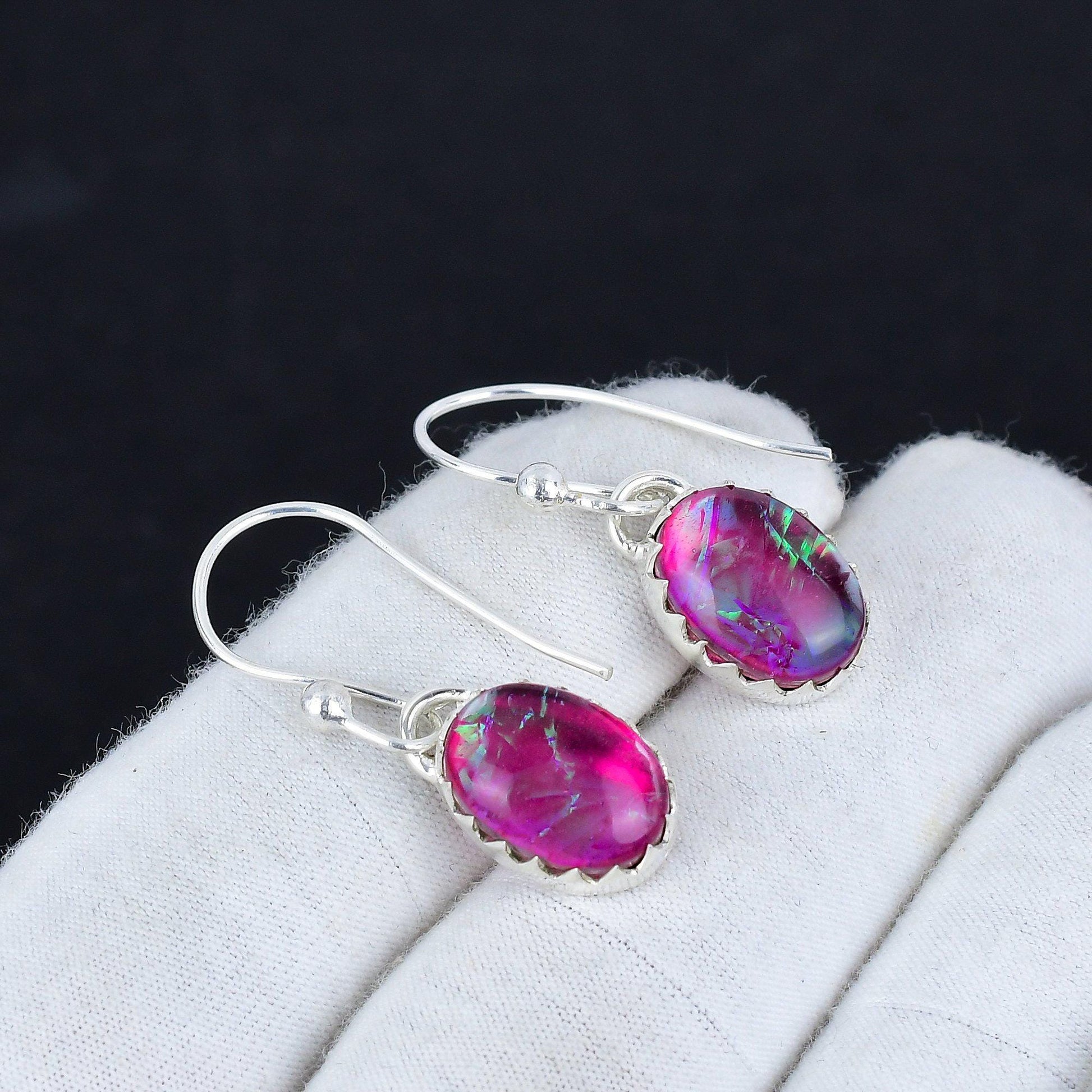 Featuring stunning opal stones with vibrant pink and green hues, these earrings are set in premium sterling silver, ensuring both durability and style.