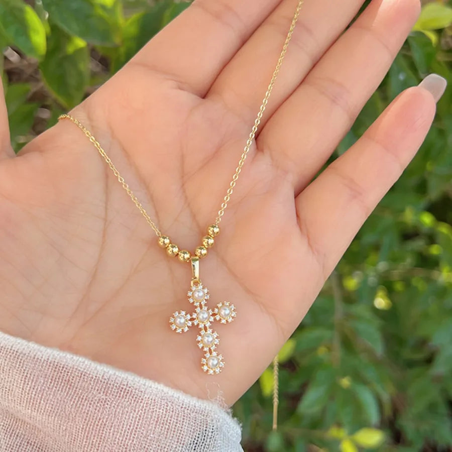 Elevate your style with this exquisite gold cross necklace, elegantly designed for any occasion.
