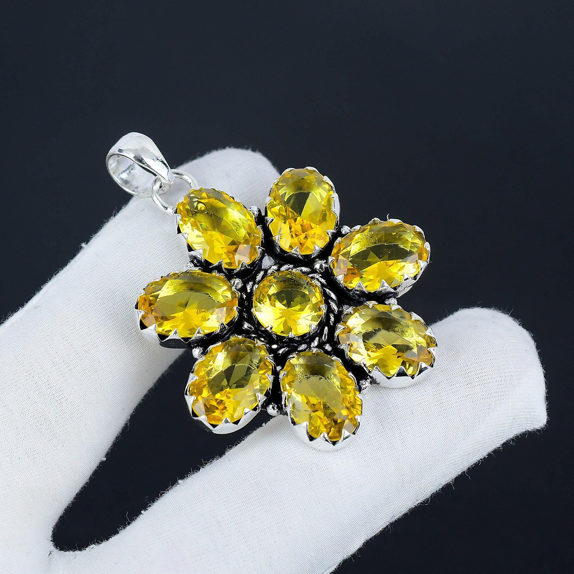Illuminate your style with this exquisite sunflower pendant, featuring seven stunning yellow gemstones meticulously arranged to form a radiant floral design.