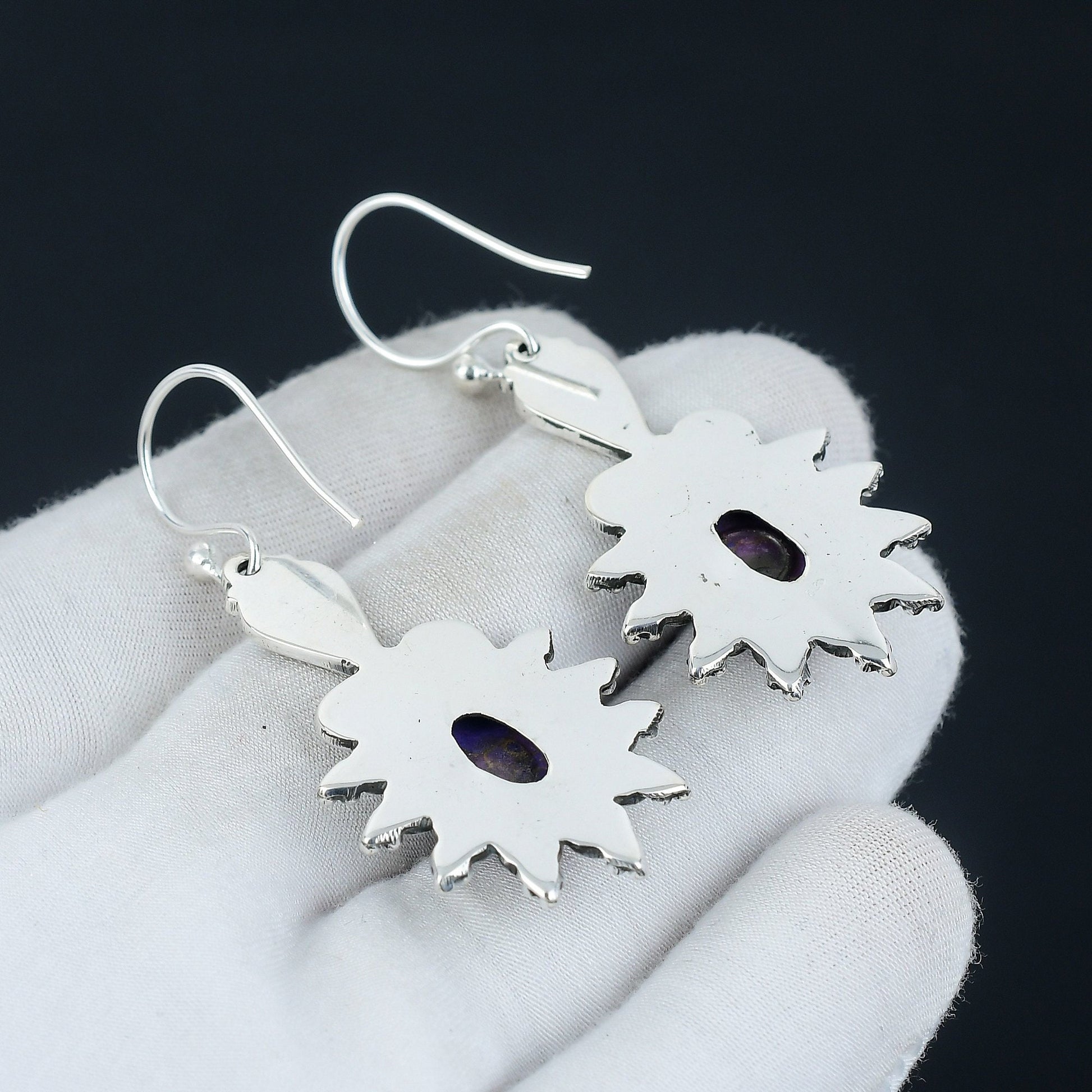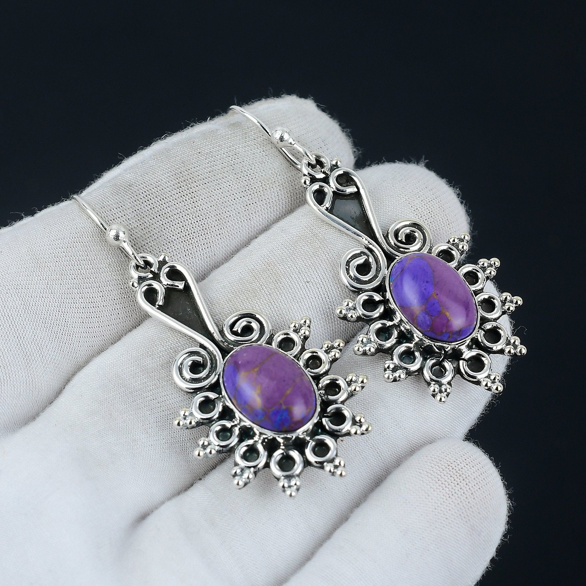 Introduce a touch of exquisite elegance to your collection with these stunning vintage-style dangle earrings. Featuring vibrant purple stones set in intricately designed silver frames, each piece radiates sophistication and charm.