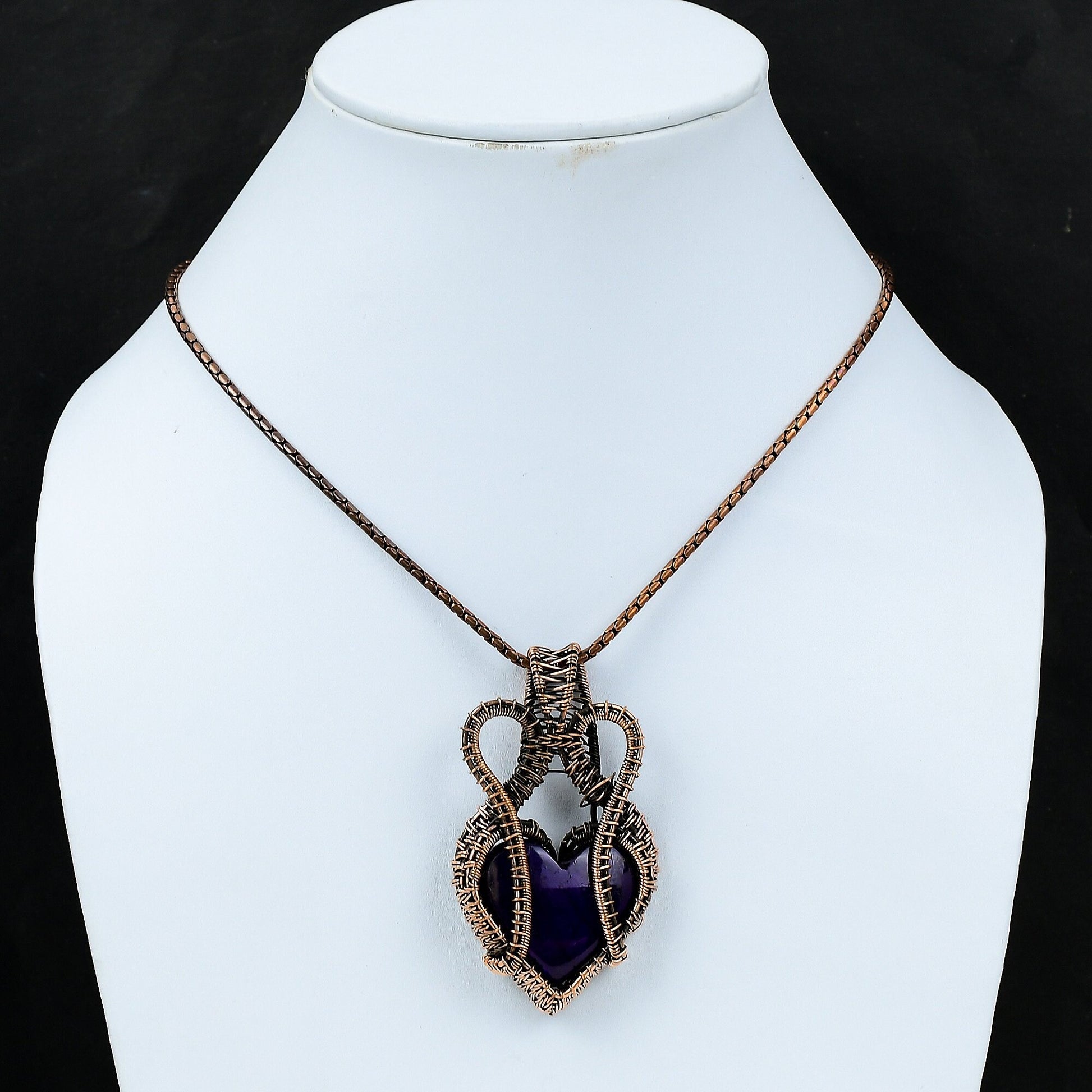 Introducing our stunning Heart-Shaped Wire Wrapped Pendant, featuring a deep purple gemstone that captures the essence of elegance and mystery.